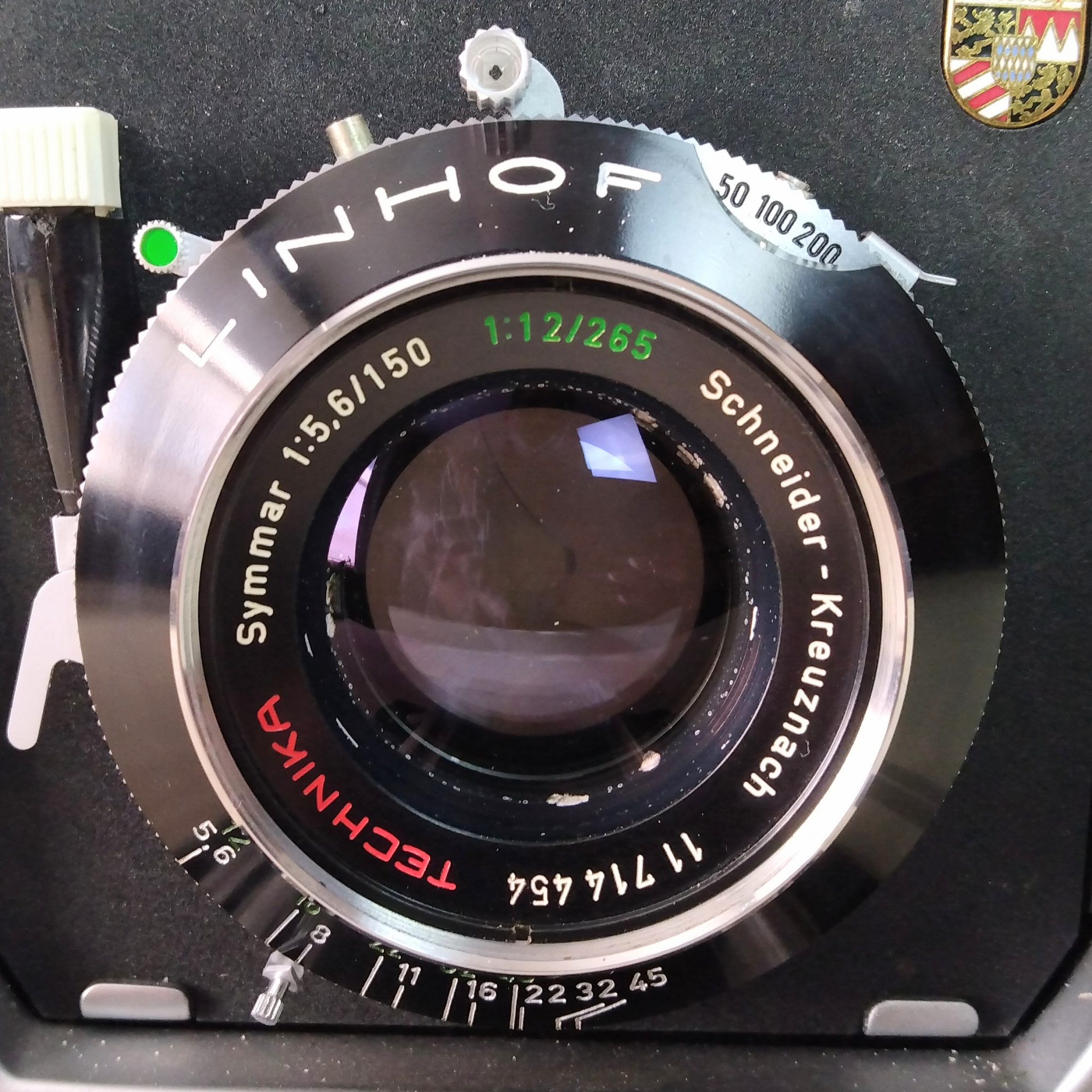 - Schneider-Kreuznach Symmar Lens - 150mm/f5.6; converts to 265mm/f12 with the rear element removed
