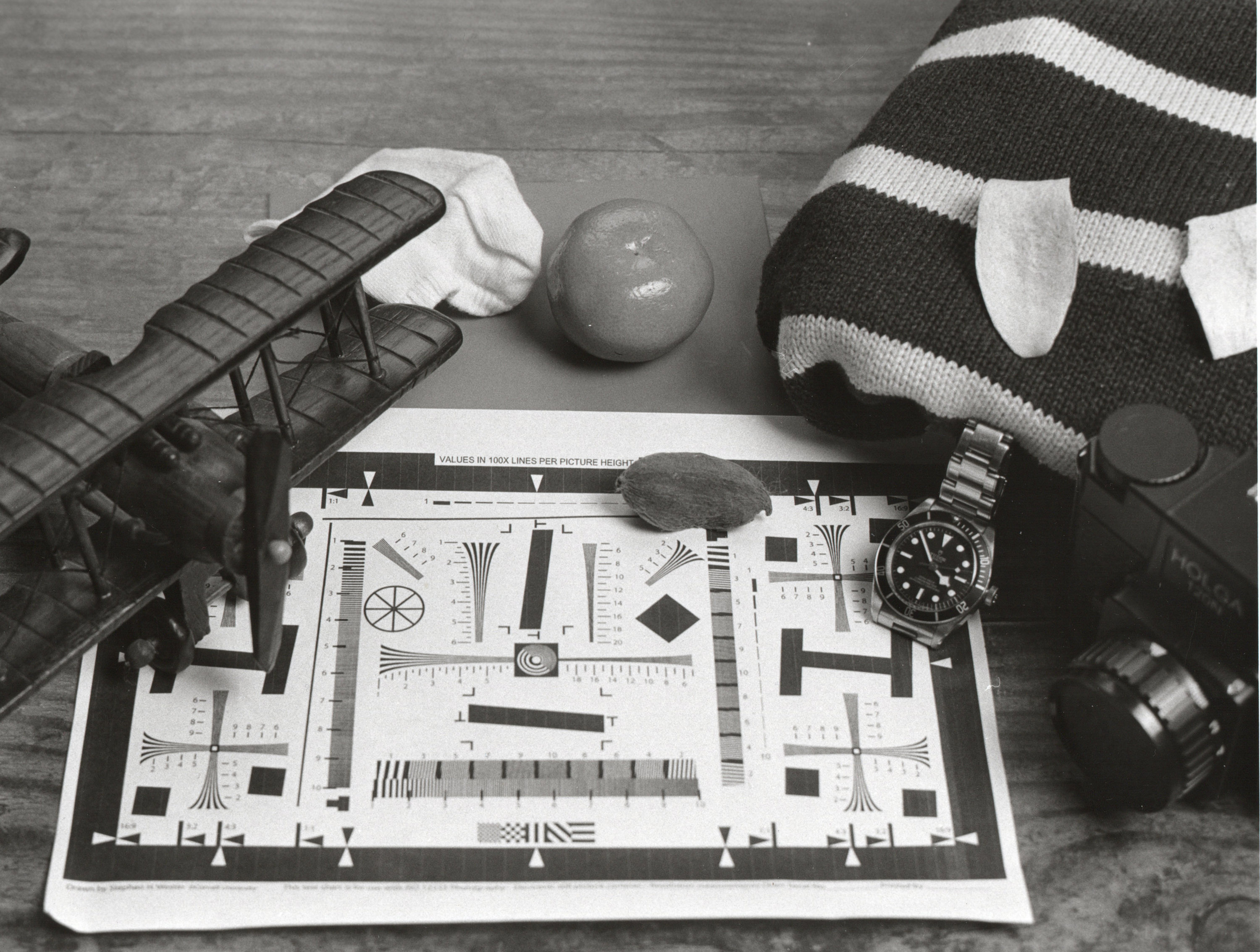 - Subject matter: 24 identical frames of variuos objects including a gray card (underneath the tangerine) and a test target printed with my inkjet printer (!)