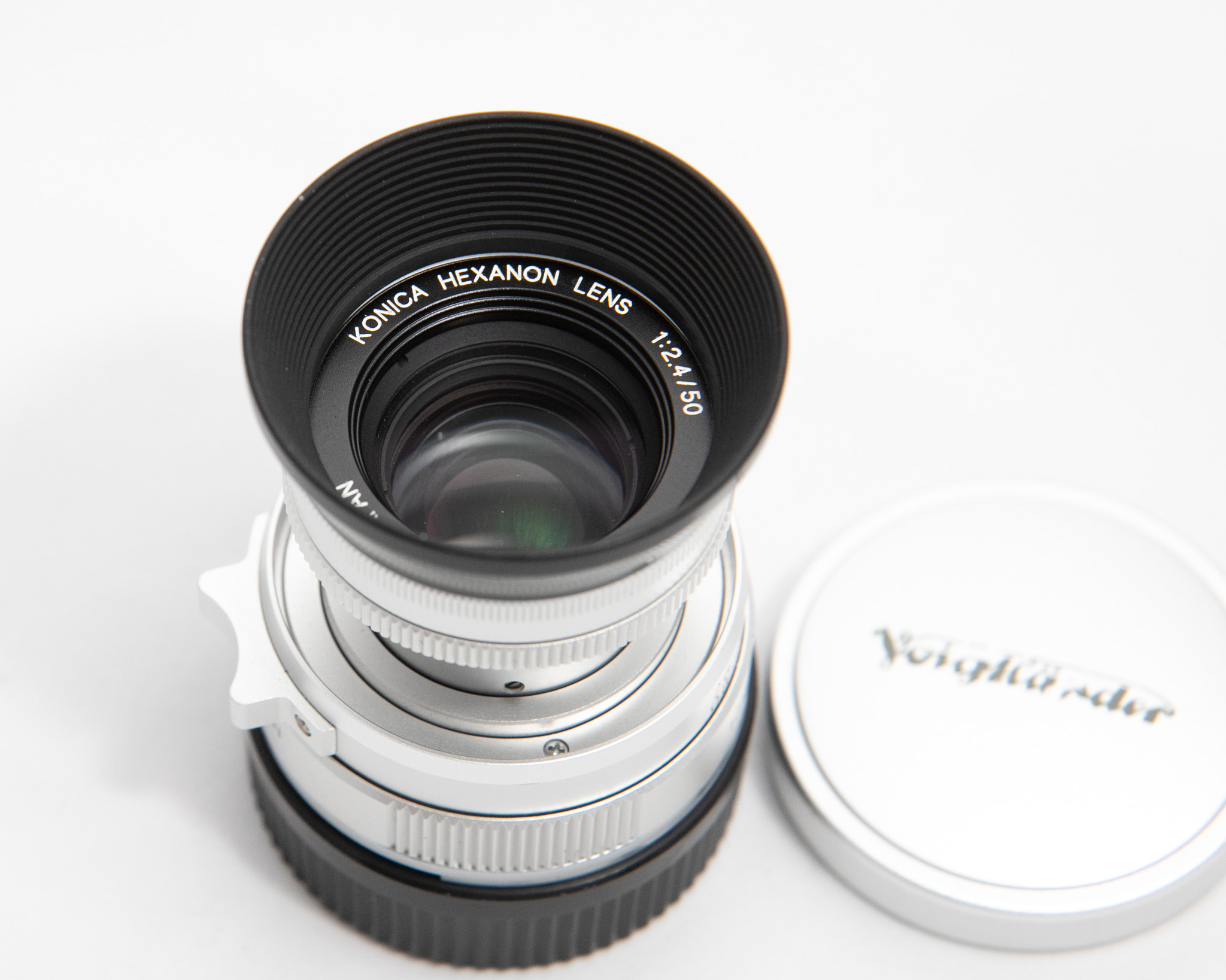 For Sale LTM Konica Hexanon-L 50mm F2.4 Collapsible, with M-Mount Adapter