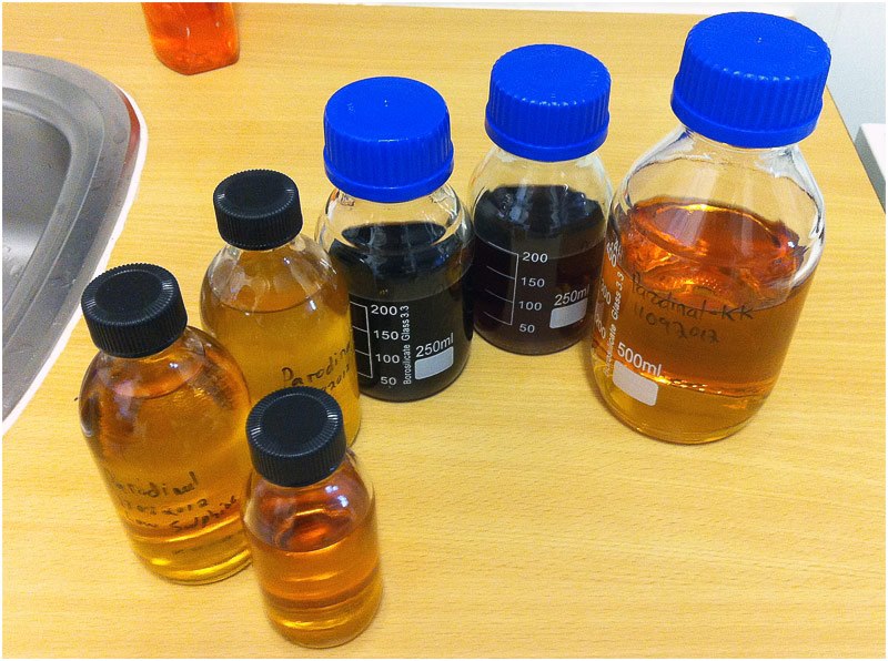 Parodinal Batch 27082012-01: No crystals yet. Solution is a clear amber colour with very feint and very little sediment.