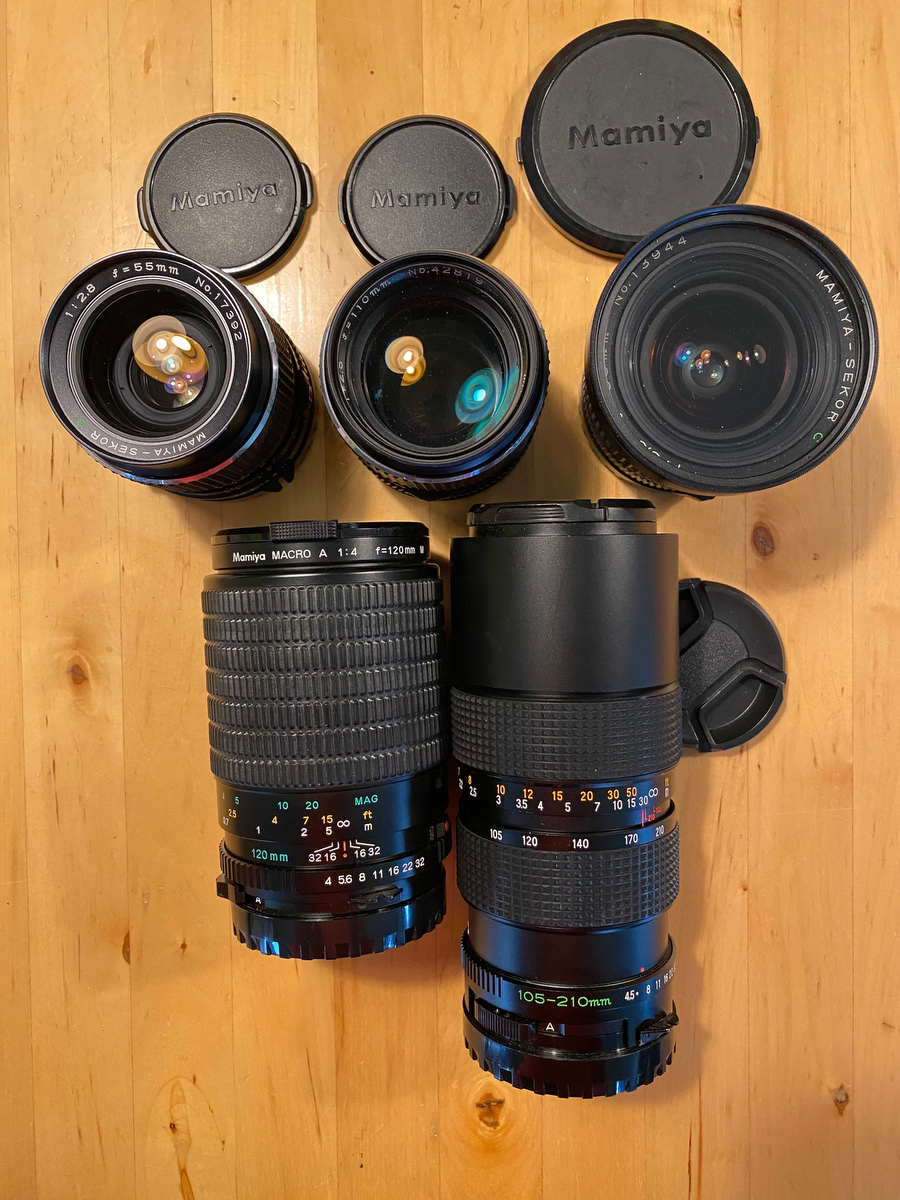 Also selling the following lenses for the 645. All are in excellent condition - no haze or fungus, focus is smooth, cosmetics are nice. Several have been serviced in the past year. It is my understanding that these lenses also work great adapted to the Fuji GFX system, particularly the 120macro and the 110mm.