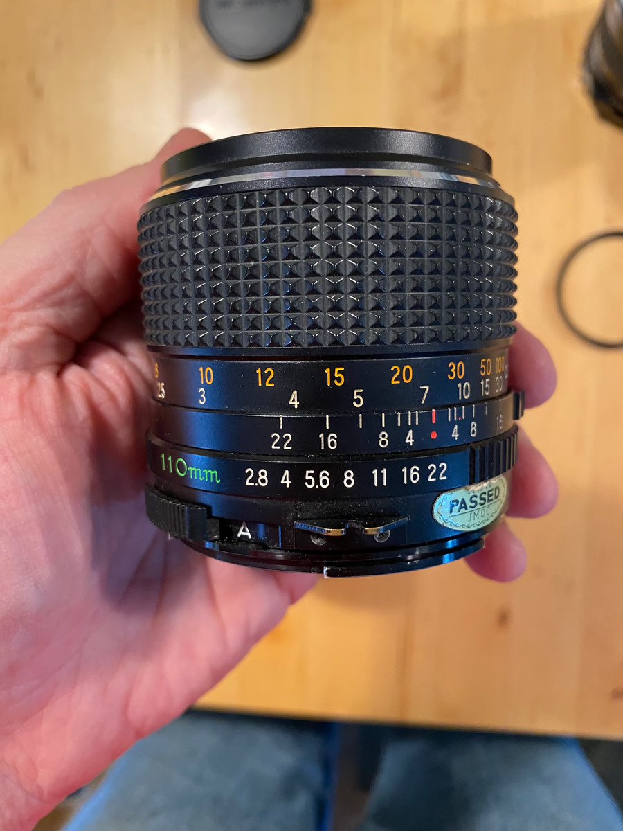 • SOLD 110mm f2.8 C - My favorite lens for the Mamiya, beautiful rendering and bokeh. Was overhauled by Bill Rogers this year. Super clean with smooth focus. Comes with caps and UV filter. $300 net to me.