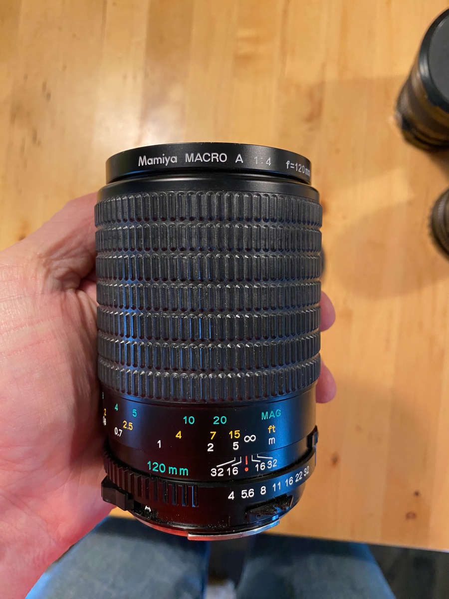 • 120mm f4 Macro A - An amazingly sharp lens. Lovely at closer distances. Super clean and smooth copy. $300 net to me.