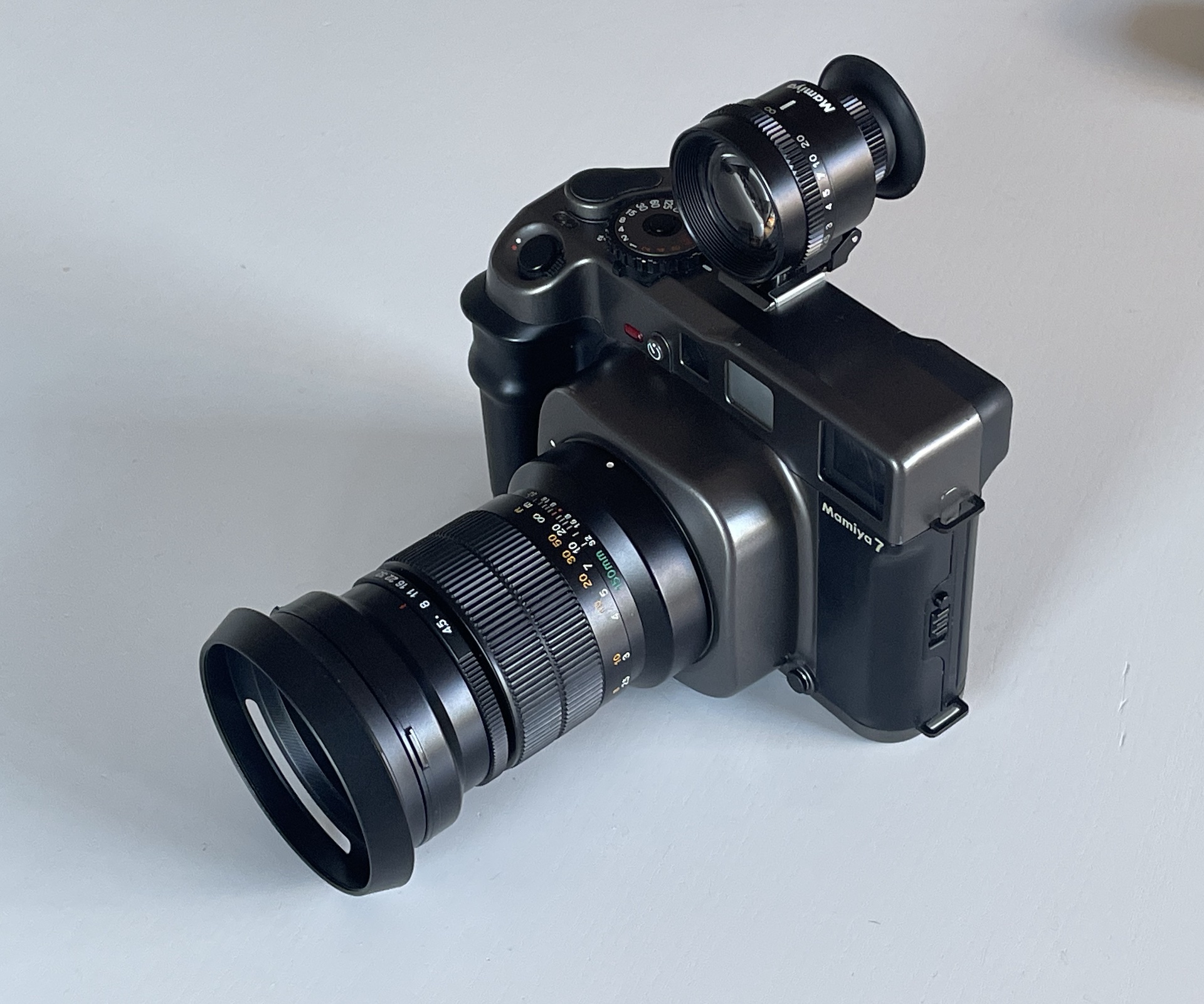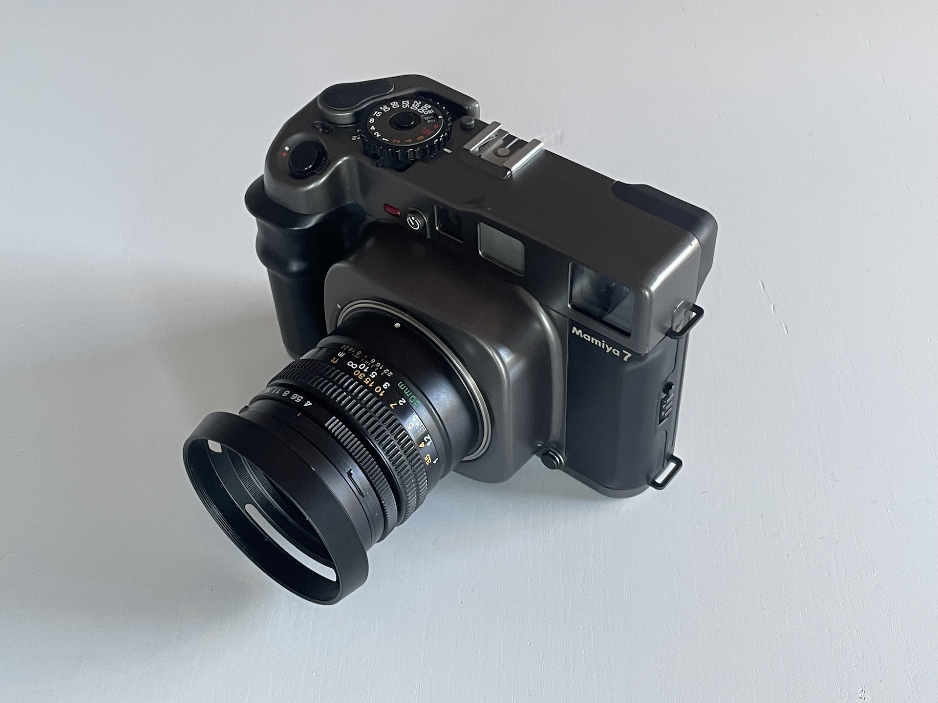 As other Mamiya 7 users may agree, the original lens hoods (particularly the 150mm) are not very good and border on an elaborate practical joke by Mamiya. I'm including screw-in metal vented hoods that I've had on these lenses, including caps that allow the hoods to be left on full-time.