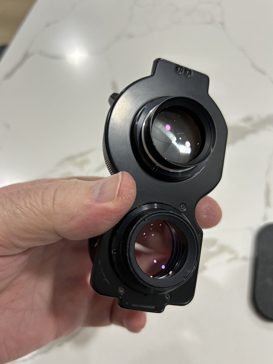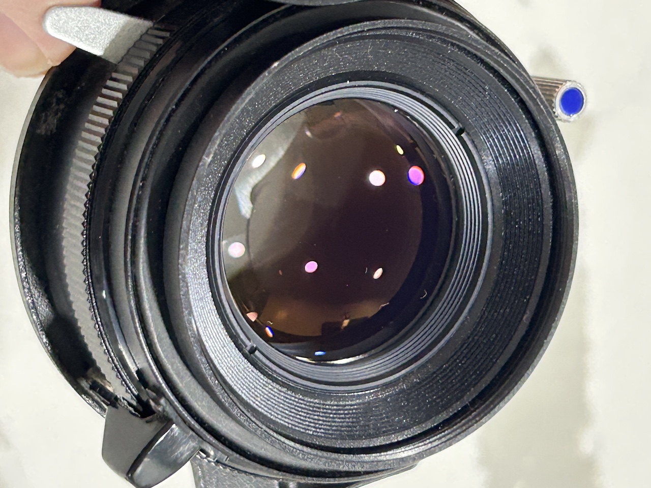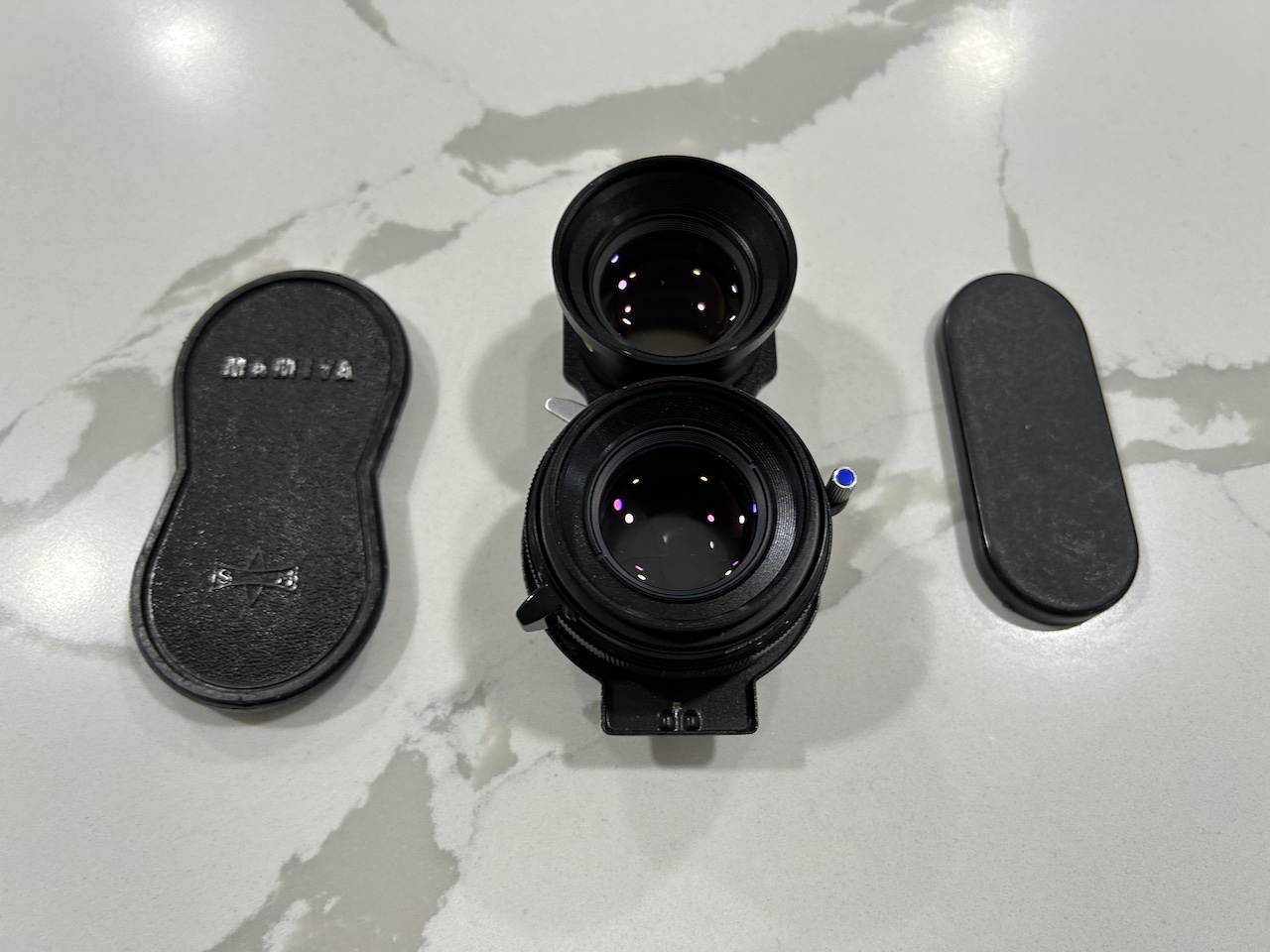 I am selling a 80mm F2.8 Blue Dot S, for the Mamiya TLR system. This lens is in exceptional condition in all respects. The shutter speeds are all correct, the mechanical motions proper, and the glass condition outstanding. This lens has seen little use. The S Blue Dots are said by some to represent the pinnacle of excellence for Mamiya TLR lenses.