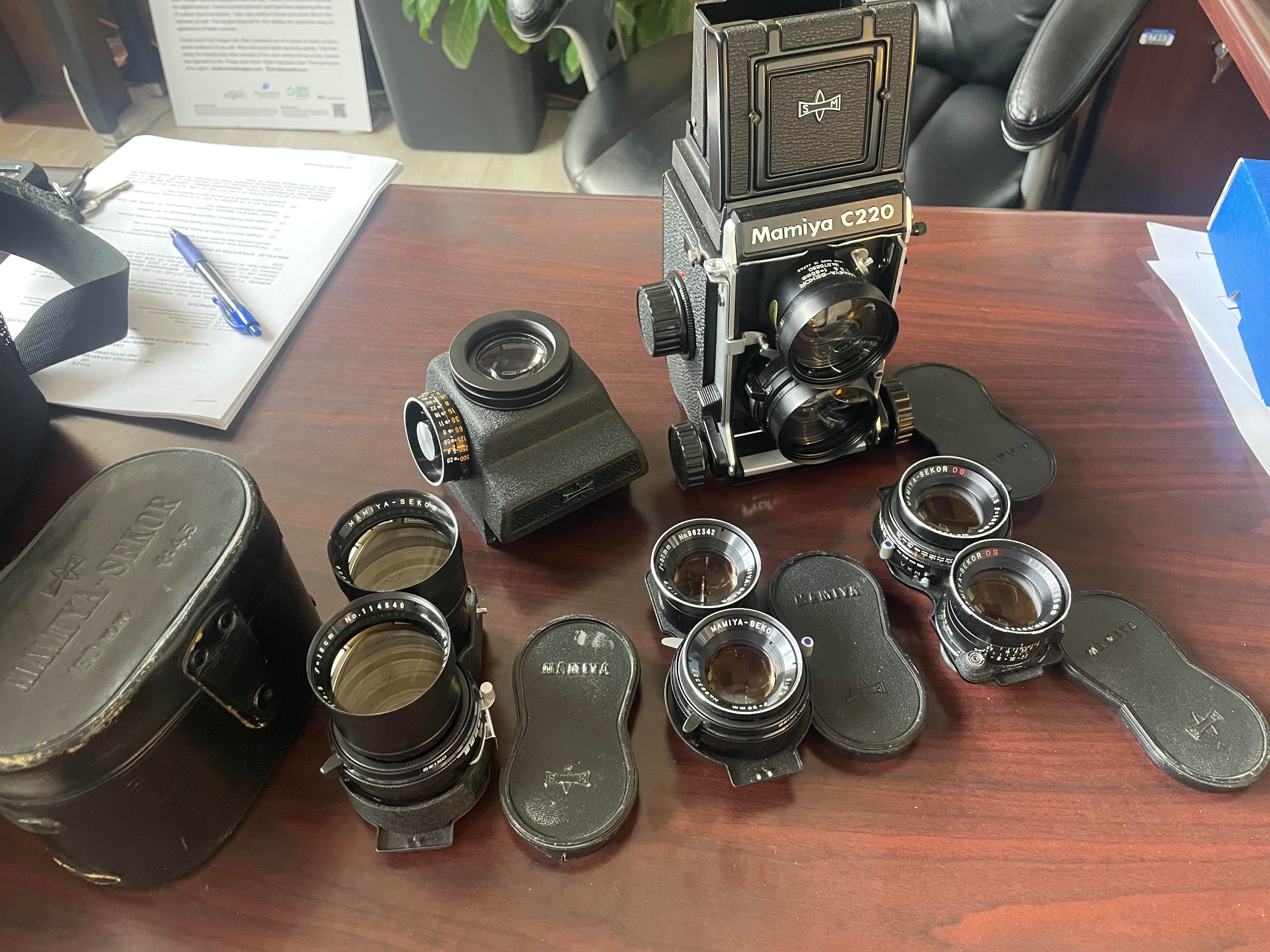 Selling an exceptional Mamiya C220F bundle. All glass looks great, shutter speeds accurate (to the ear and in results), and everything in really good shape.
