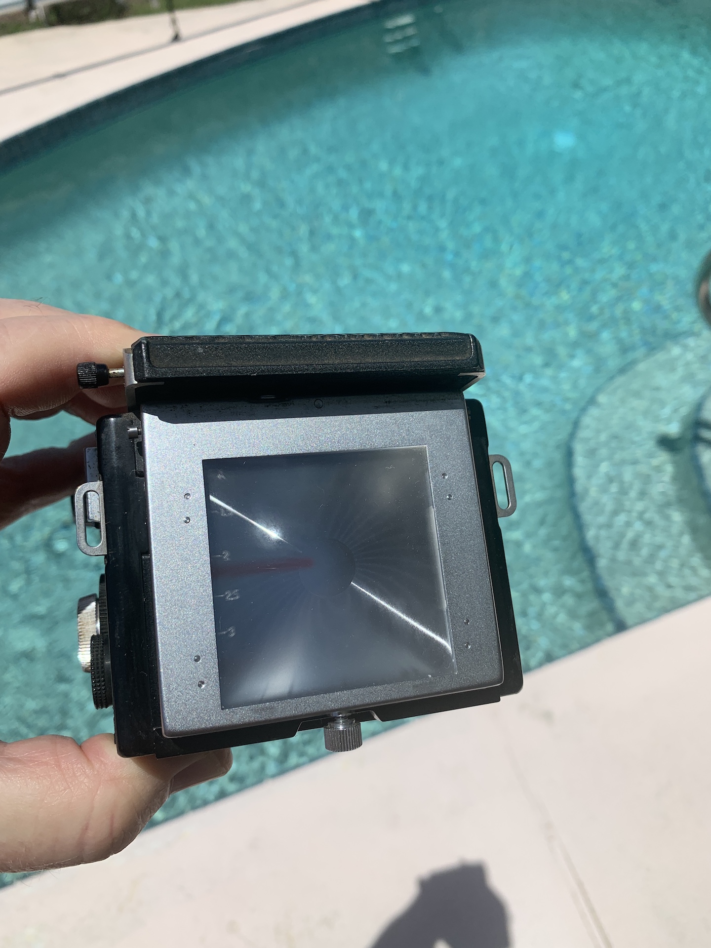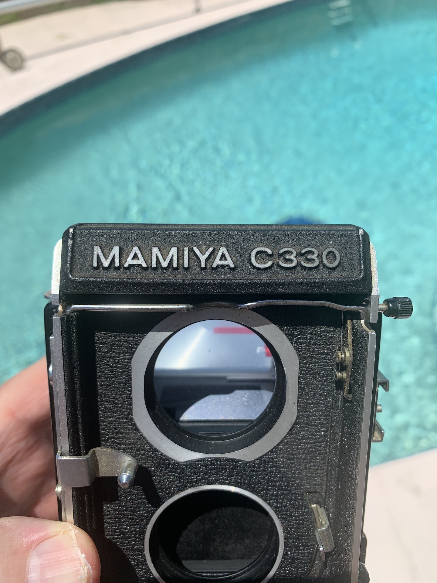 I am selling a Mamiya C330 F Professional TLR Body. As far as I can tell this body works fine except that the focusing scale distance indicator window is not working, a common problem with these and essentially irrelevant to actual use as one normally focuses using the focusing screen. The little plastic cover for the focusing scale window also seems to be missing. I mounted a Mamiya lens on this body and tested everything I could and did not find any other problems. I have not tested this body with film, but I doubt any issues would arise.