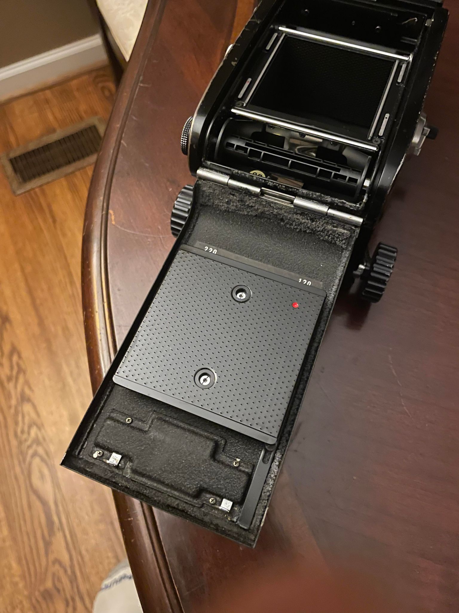 Camera is in good shape, functions like it should, and just needs a lens. You can snag a lens for roughly $100 and have a nice square format system.