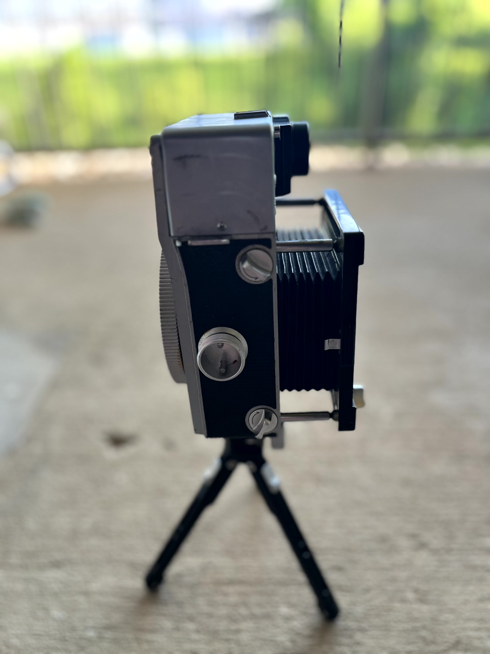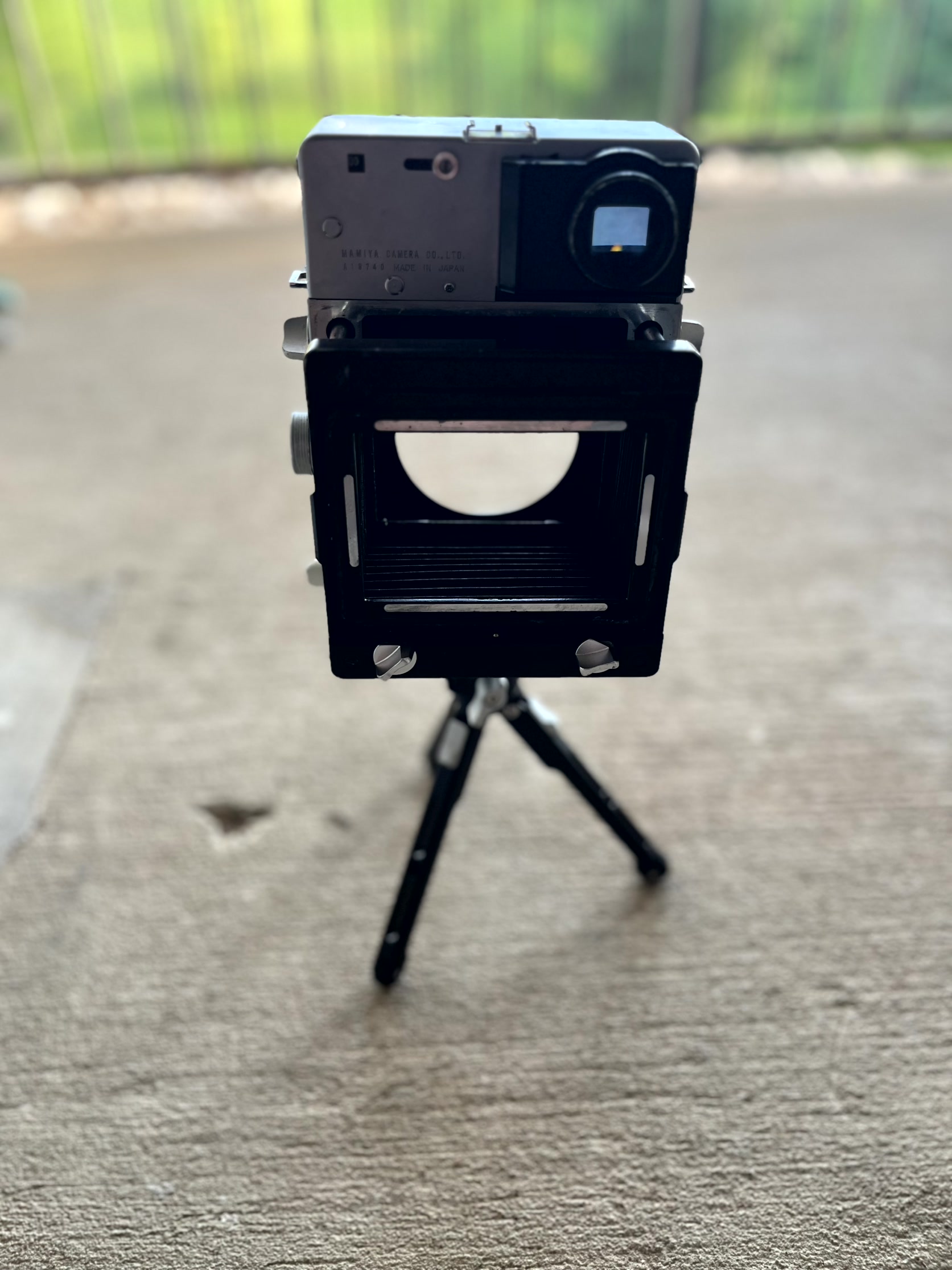 The body was tested with a 6x9 black and white film, developed in D-19 1+1 (pretty grainy). It was compared with two other Mamiya Press cameras using the same lens, no difference in performance was found. See the last picture taken at infinity with 100mm f/16 1/60.