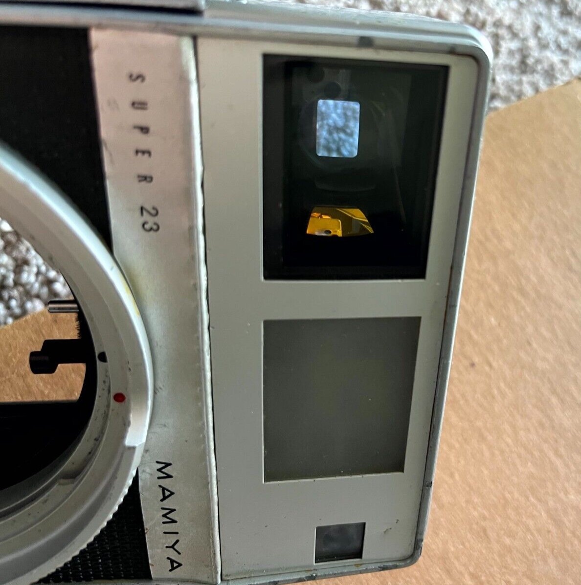 The viewfinder/rangefinder assembly was cleaned inside and aligned to a distant target with my 100mm/3.5 lens. There may be slight variations, especially if you have multiple lenses. In that case, I can provide instructions regarding adjustment of the rangefinder, it's pretty simple.