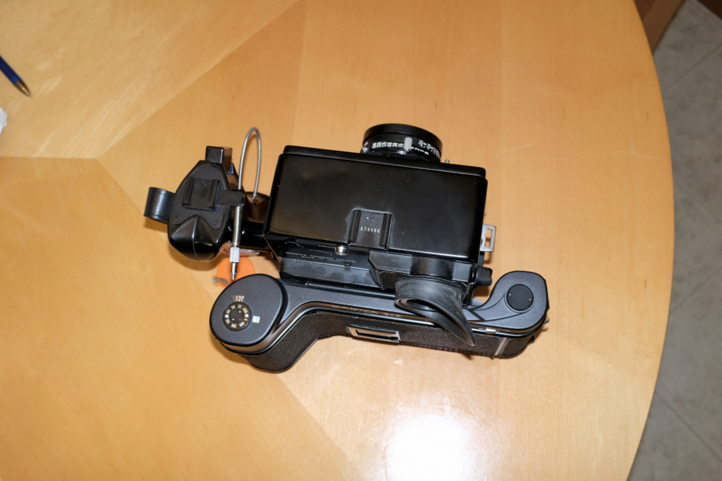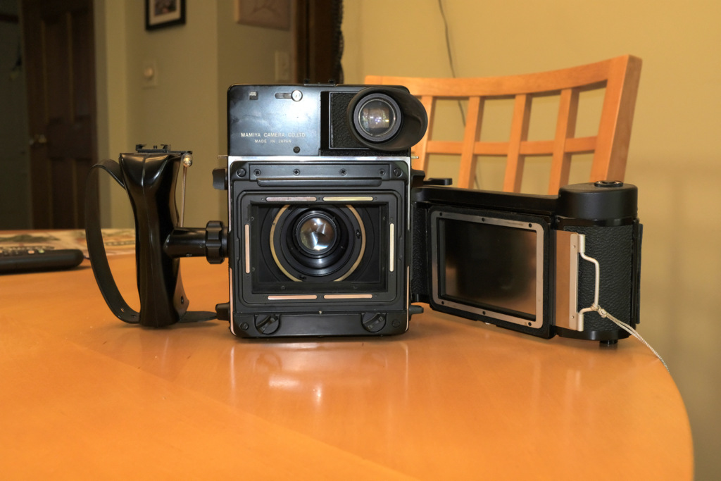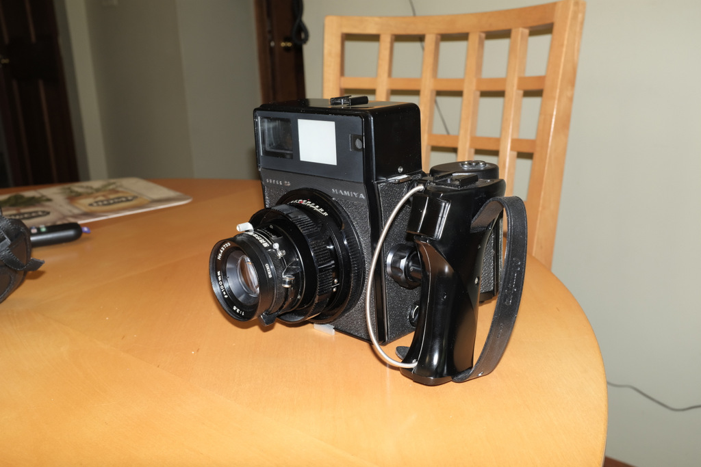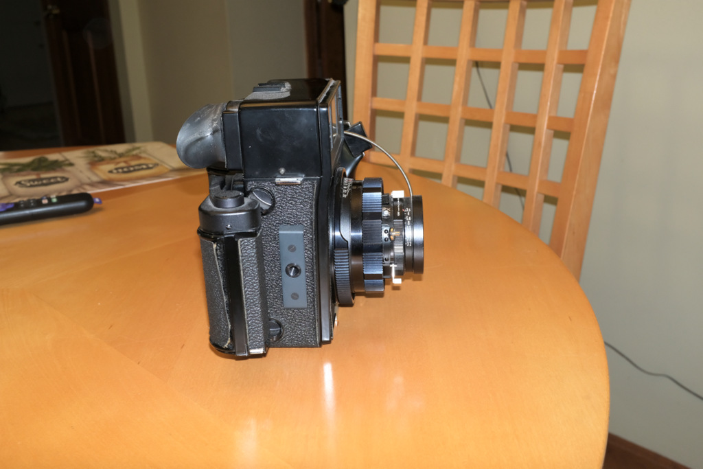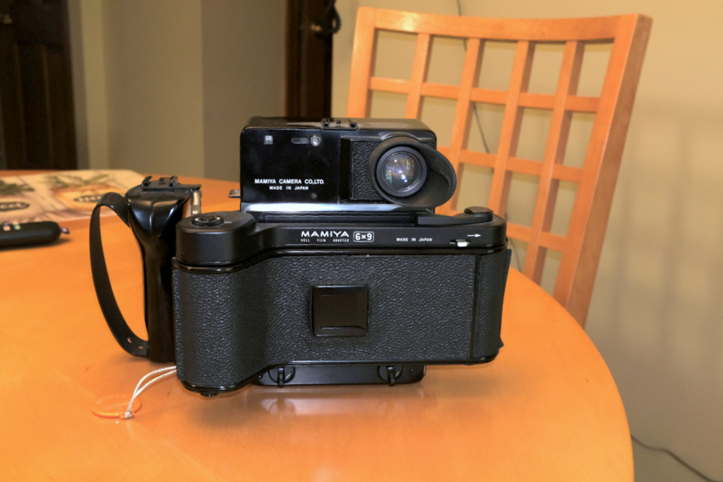 Bought this about a year ago and put 1 roll through it. It's just to heavy for me. It comes with 6x9 back and focusing screen that looks like it was never used. It's in very good condition except for a little peeling of the leatherette in some spots. The shutter appears to be accurate, even the 1 second. The glass and blades look good. I had cleaned the viewfinder after I received it. There are 2 tiny dents on top of the finder where the metal is very thin. All in all a very nice specimen of this model. Sorry for the dusty pics. The last picture was after a quick dusting.