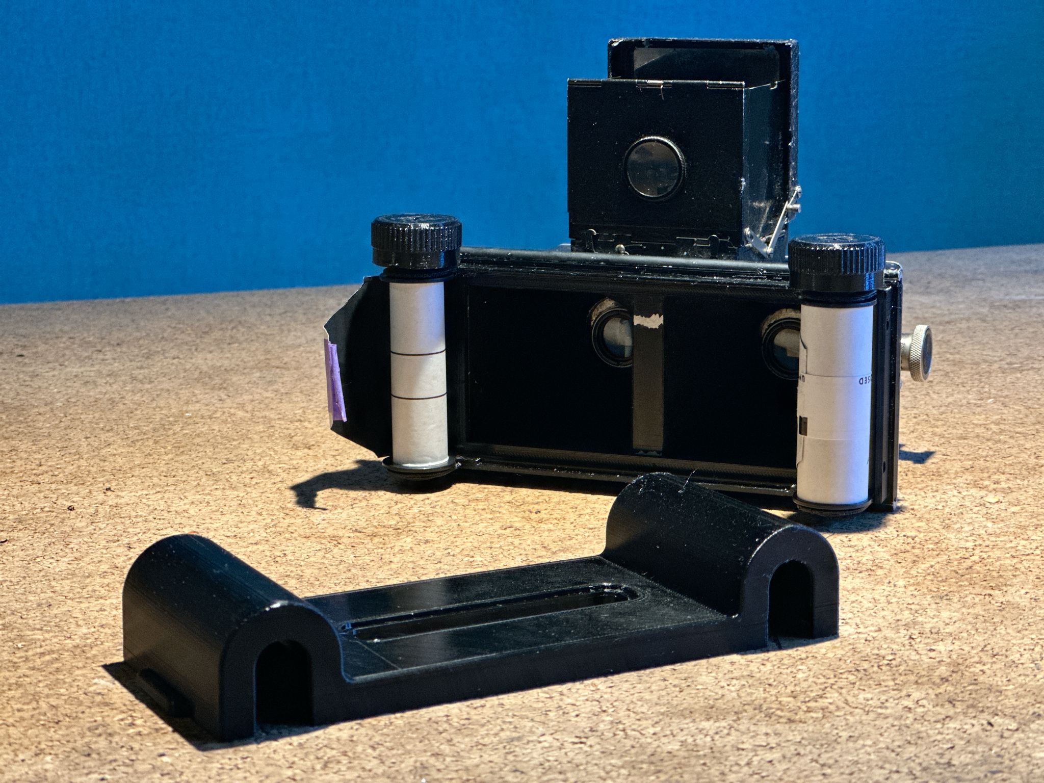 hey guys, I just managed to 3d print a roll film back for the Heidoscop. It works like a charm! Is perfectly light tight even with the back continuously open.