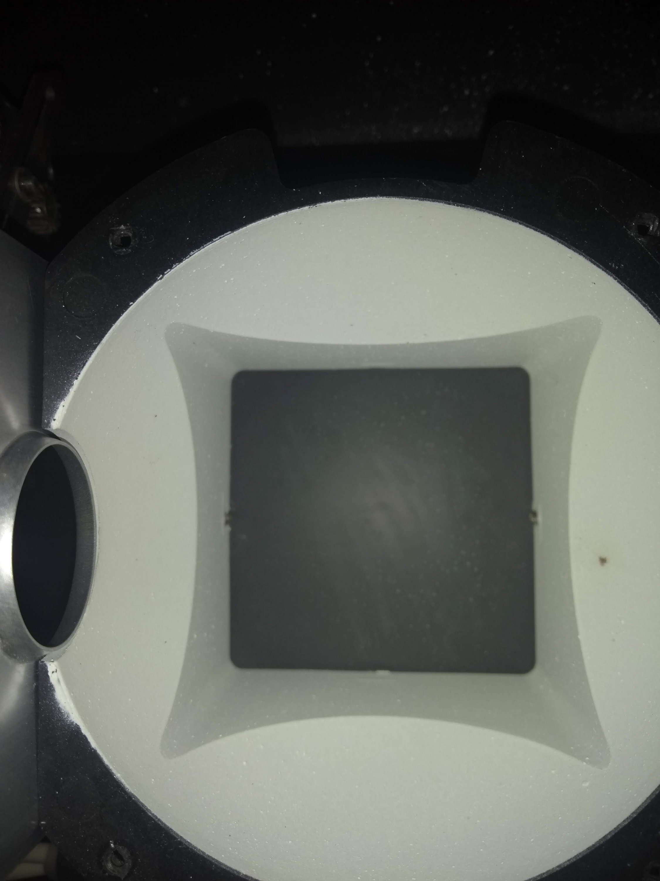 I just bought an Opemus 5 with a Meochrom color head. Upon initial powerup I noticed a very faint yellowish light coming from the head. In fact when mounted on the enlarger I cannot even see the light coming from the lens to the baseboard (in ambient light). I inspected the head and the bulb shattered almost on its own so I guess it explains the dim yellowish light (I now ordered a bulb and waiting for it to test it). However, I also opened the reflecting dome and while the inside of the dome is OK (nice white color) the glass which is at its bottom (where the light comes out of) is completely dark and matte, with some sort of "blisters". On the other side (the "output" side) the glass appears matte white with smaller "blisters" (some photos attached).