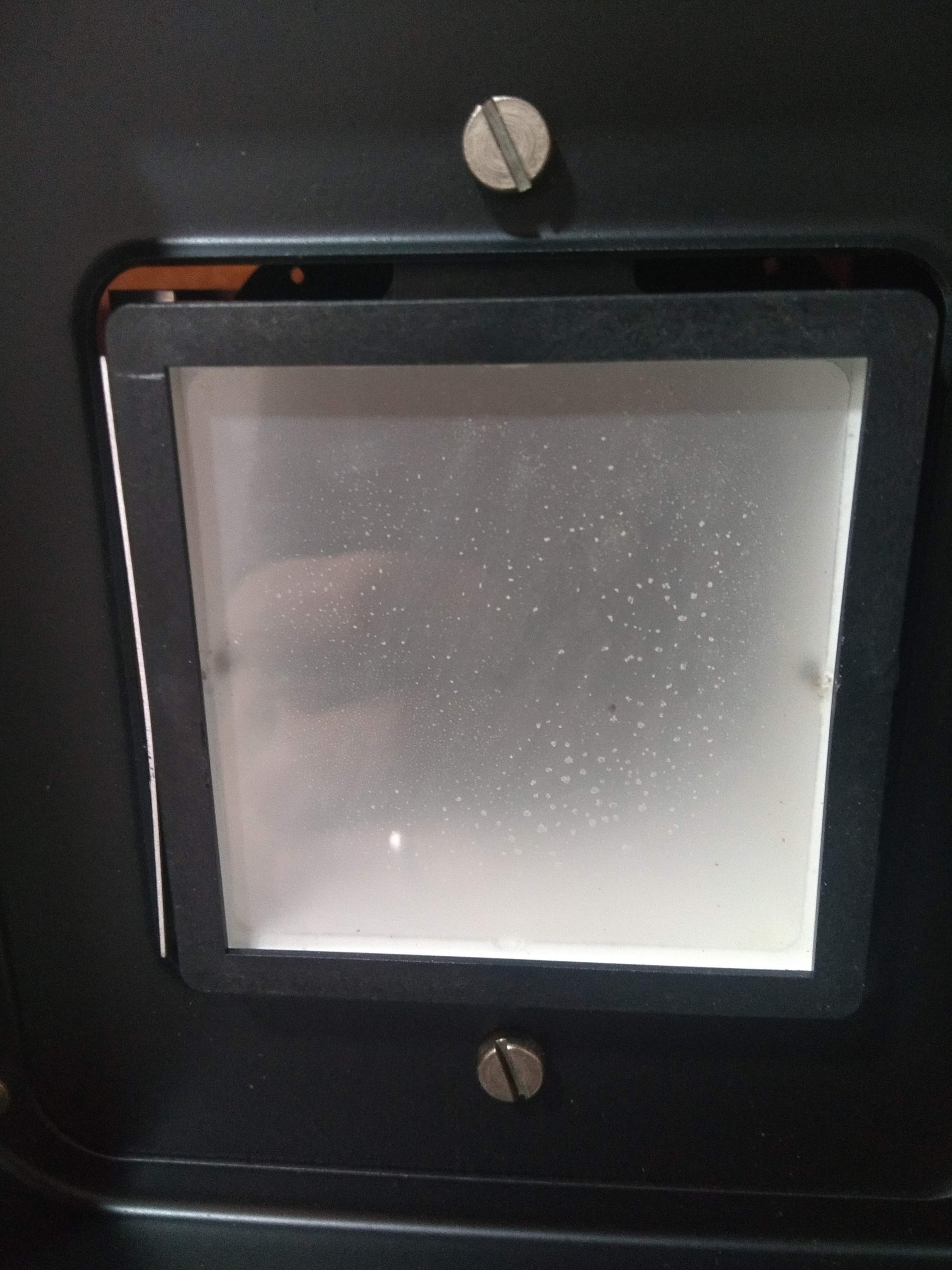 Is this how it supposed to look? Or should I take the glass out and run it under soapy water? I mean, is the black stuff soot or something? I don't fully understand the purpose of this glass, I guess it acts as a diffuser. The manual for the enlarger (not the head) even mentions a "heat protection glass" on top of the enlarger (not the glass on the color head), which is strange since I would expect the glass on the head would receive all the heat first (in fact, it appears way thicker).