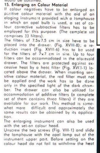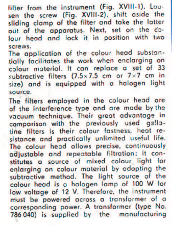 As a side question, the manual specifies that this "heat protection glass" be removed from the enlarger if you're mounting the color head (attached part of the manual, this glass is "1" in the image). Is this because this glass is made redundant with the color head? Maybe this glass only makes sense with the B&W head which does not have its own glass.