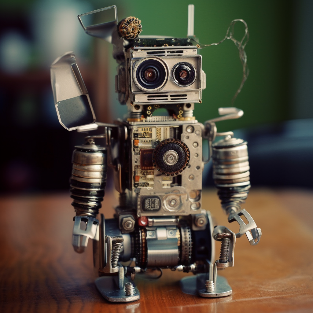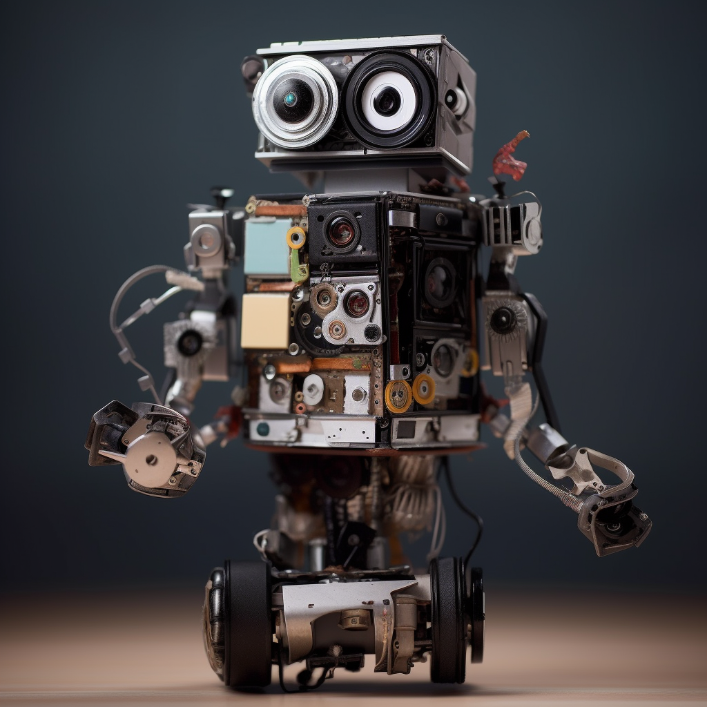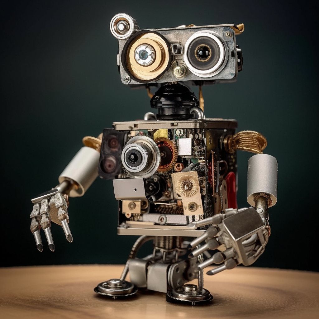 recycling a prompt multiple times generates a new content each time. In this case, "a robot made out of old camera parts"