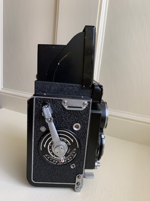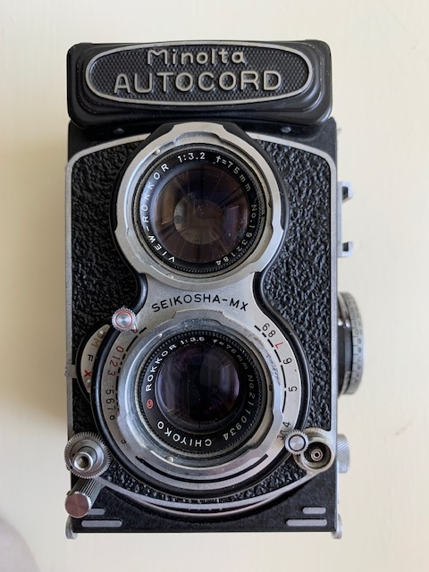 Selling my Minolta Autocord. Camera is in good shape with new leather, all functions work, glass is in fine shape with just a few cleaning wisps and the usual dust specks, shutter fires on all speeds and to my ear and eyes sound right. Exposure meter registers and I just ran a roll of film through it using the meter and exposures seem good and spacing is fine and lever wind is smooth. Viewing screen bright and focus lever works fine. Has the classic sharp Rokkor 75mm f3.5 lens. A fine classic camera.
