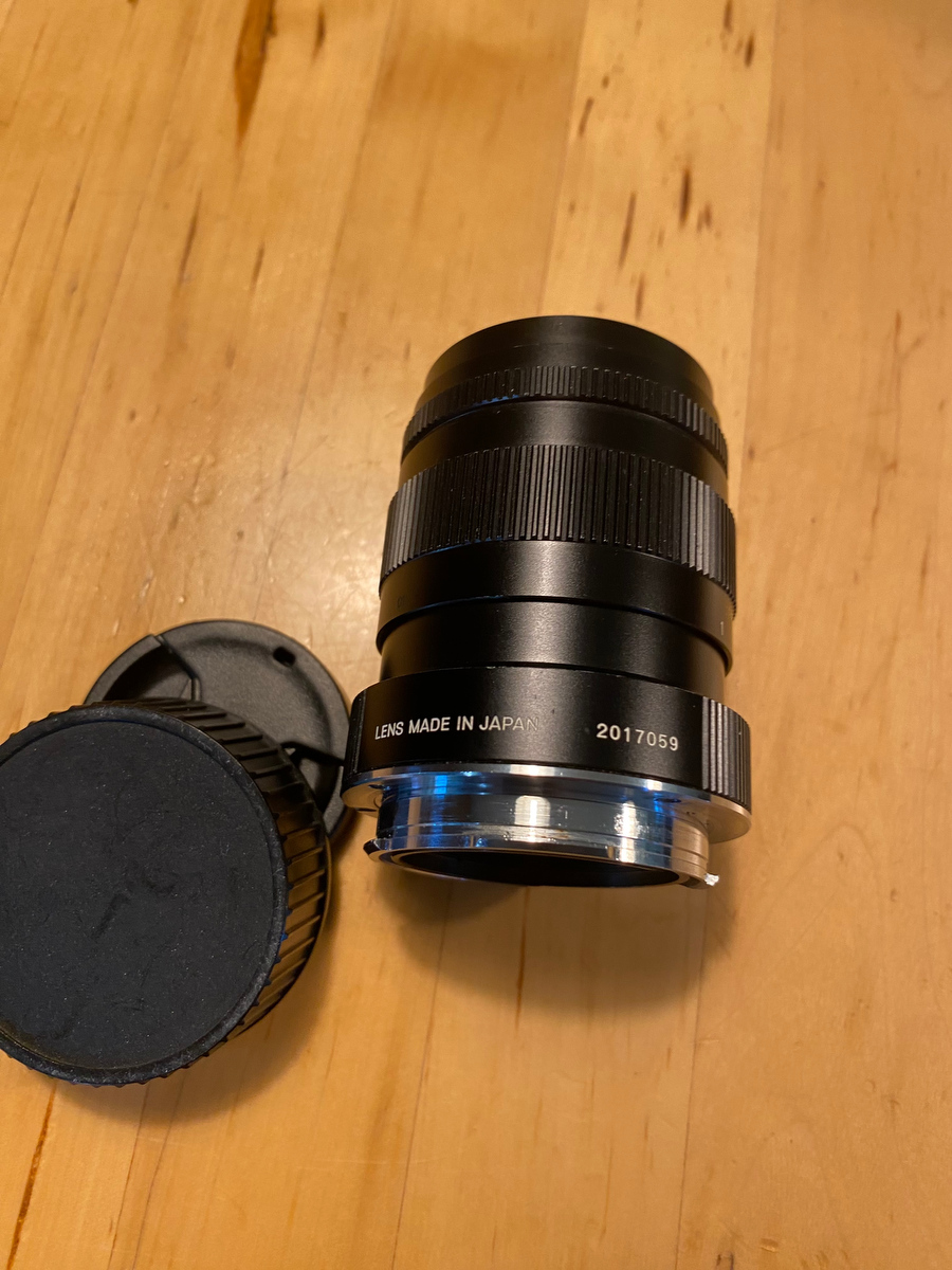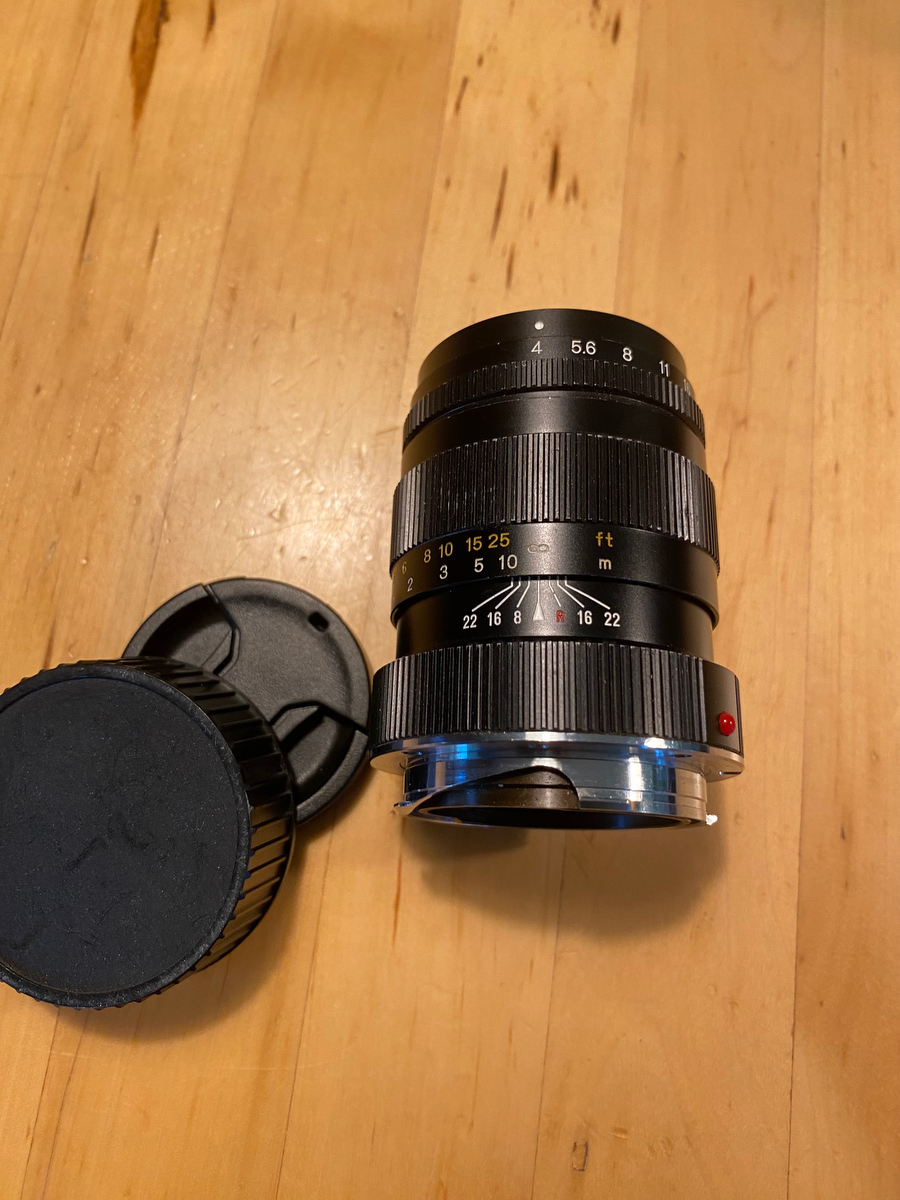 Small and sharp 90mm. Great travel lens. Mint glass, with very minor dust. No haze. Focus is very smooth, and the aperture blades are clean and click in nicely. Some usage marks on the body, but nothing heavy. It works great on my MP240, and on my M3, too.