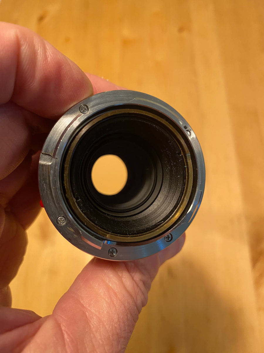 Lovely and tiny 90mm for Leica M Mount. These were produced by Minolta for their CLE camera, so it has the better coatings as compared to the earlier Leica version.