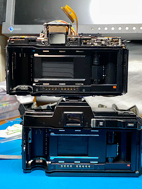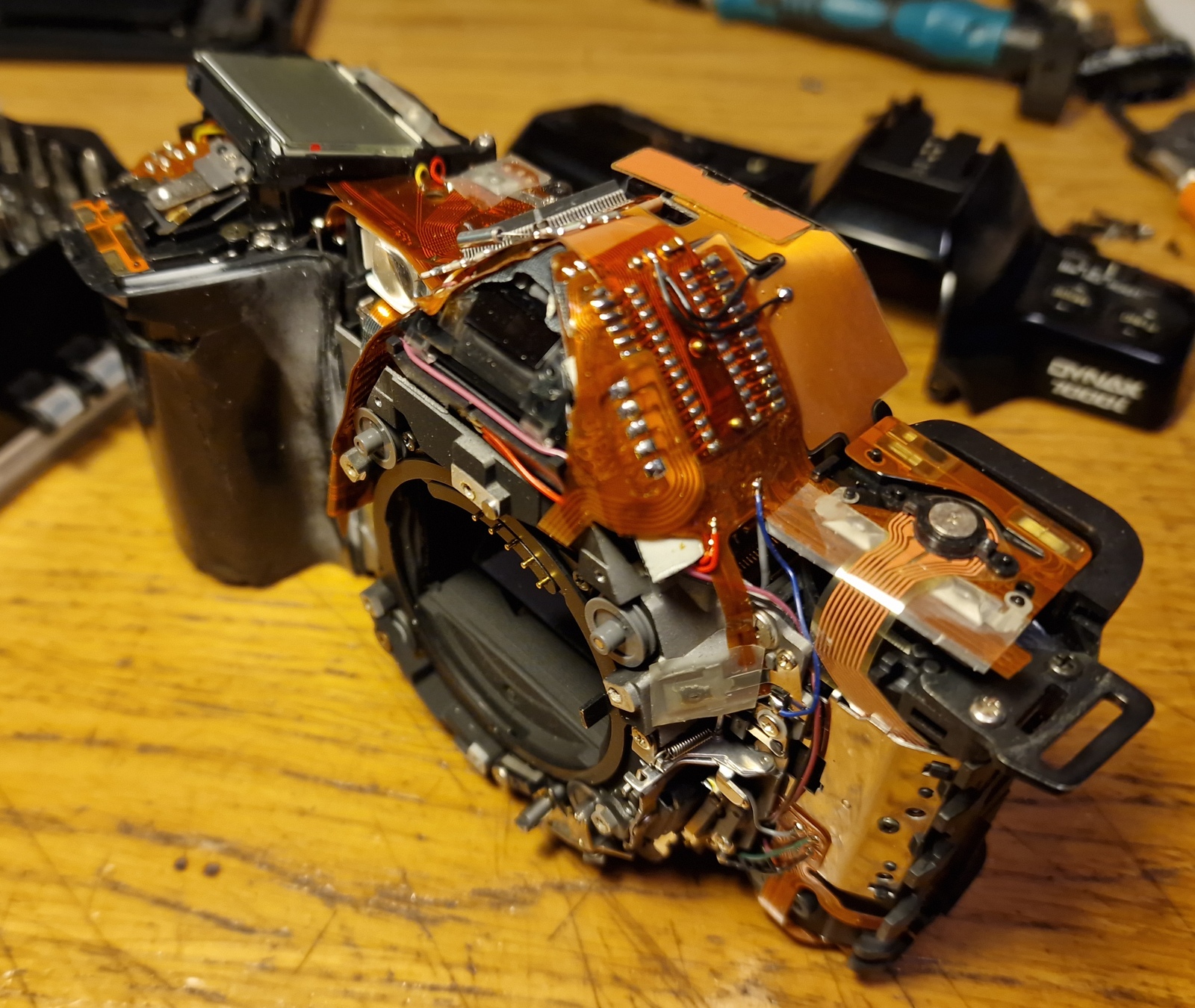 • Replacement of the shutter unit where a curtain was running too slowly, removing and installing the mirror box, see tutorial.