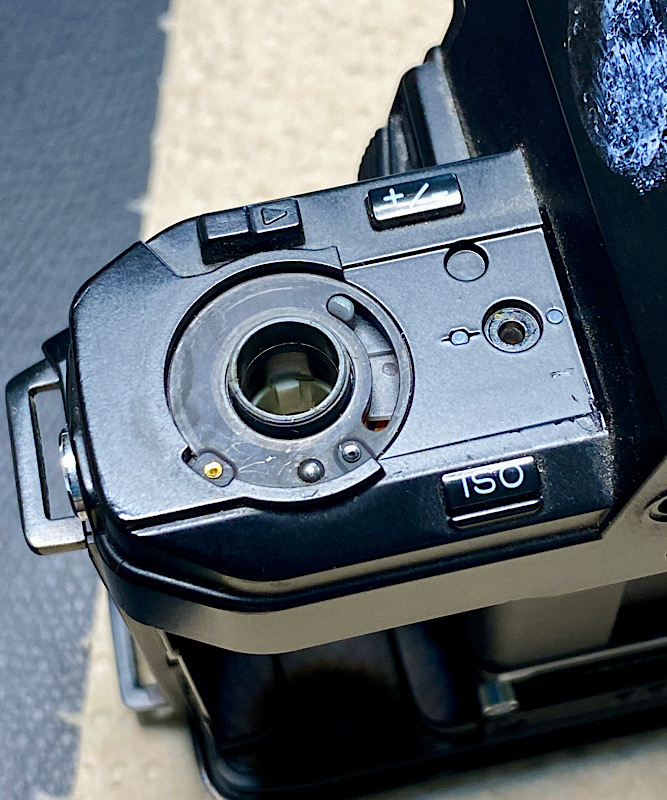 I got the thing back together but with 2 new exciting problems. One is the camera not recognizing when it's switched to manual focus and the other is the finder LCD missing segments. Guess i'll open it up and check continuity and stuff tomorrow, but probably all that jostling on the LCD's cable shifted it a bit and it could do with re-seating. Aperture seems to work though but we'll see.