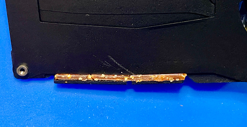 And here is the cause of digits that gradually disappear. Progressive corrosion on the contacts to the conductive rubber: