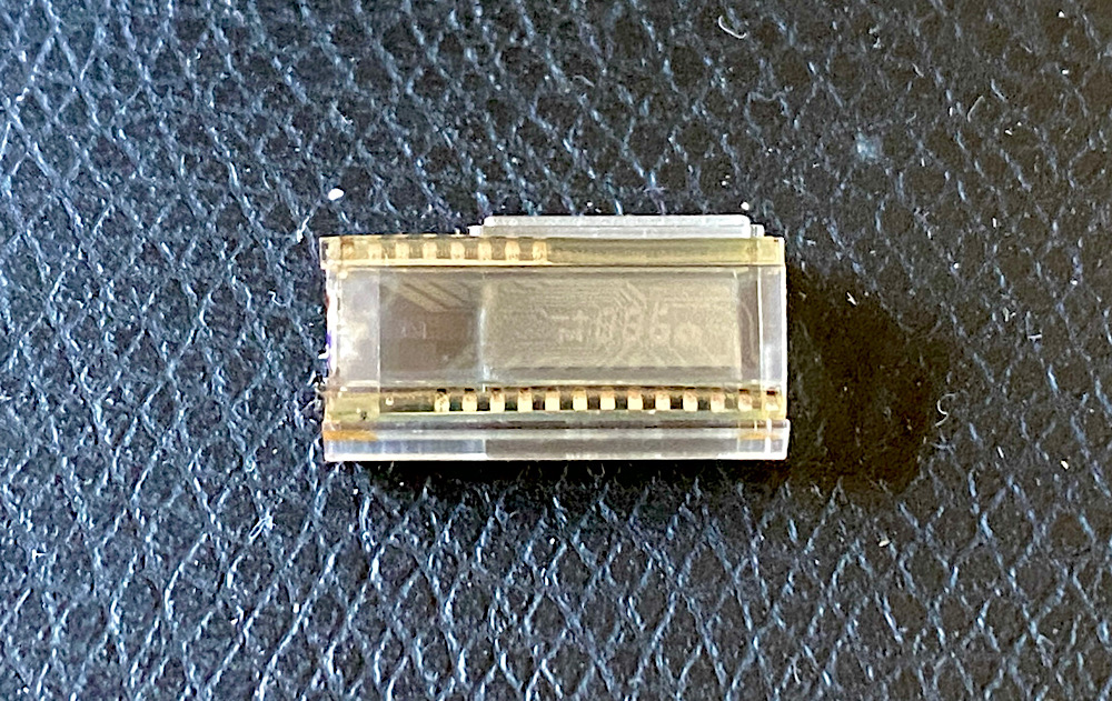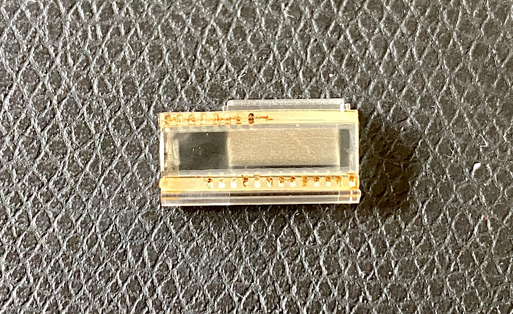 But yeah they're just like relatively soft silicone rubber blocks with alternating columns of conductive and non conductive rubber material, such they can only conduct along one axis. The extra rubber on the sides is there for support to prevent the thing tipping over or squishing out. The connection is just made with pressure and the rubber conductive parts directly touching the ITO coating on the glass and the traces on the matching PCB, I assume with high resistance but you don't need much current getting through to drive an LCD. Finger oils getting in the way can supposedly prevent contact. It is a kinda sticky as a soft rubber, which is probably incidental, but it might help prevent the things walking out from vibrations.