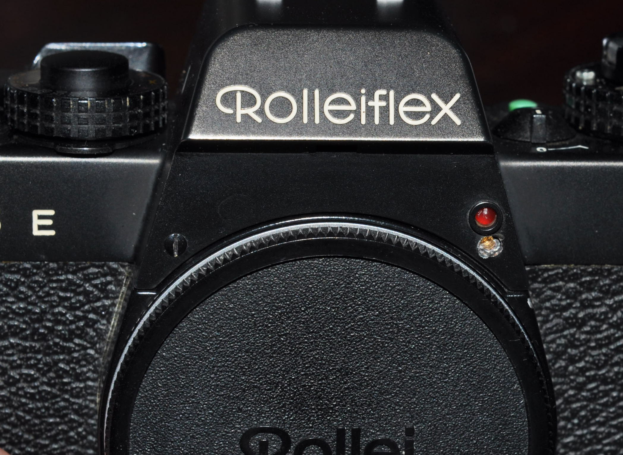 I suspect that the camera was stored in a damp place for a long time, as indicated by the numerous signs of corrosion. You can see this very clearly in the two screws beside the eyepiece, which are made of metal.