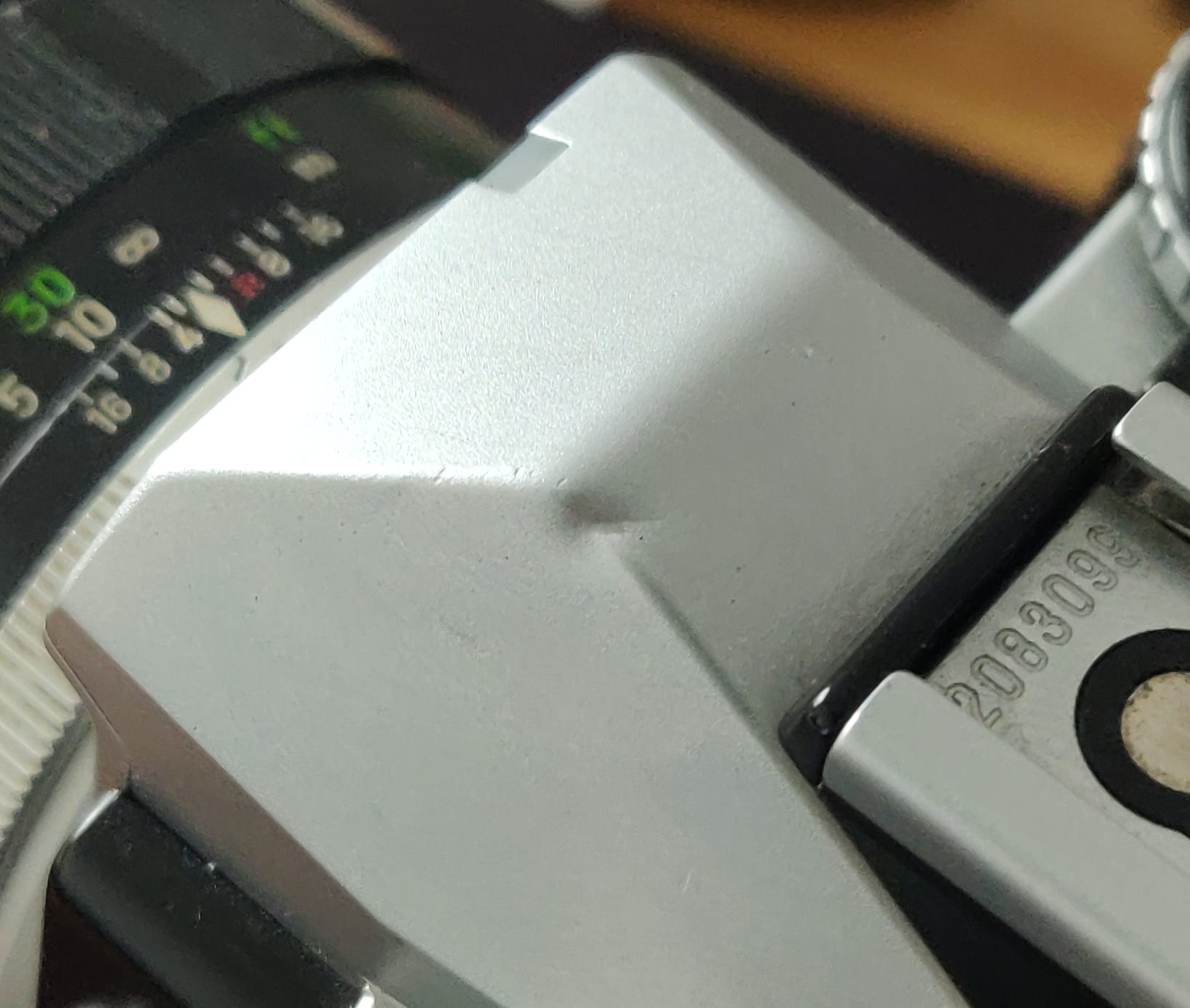 About myself: I'm somewhere between amateur and intermediate when it comes to do-it-yourself repairs. With a manual or a good hint I can work ok. So I have already tried to find some repair manuals or videos. However, I cannot seem to find anything. I have already taken a look at the ground glass and if it is not aligned properly. A photo of the current state is attached. From my point of view, the ground glass is properly mounted inside the body. It seems that the camera was also dropped before I bought it. A picture of the dent on top of the prism is also included. If it is not the prism, I assume that the screw holding the mirror in the non-triggered state is slightly misplaced. I cannot find any reference to ways to "recalibrate" the focus properly. Does anyone have a good source/manual/etc. that might be helpful? I've seen DIY collimator manuals before. So this tool should not be a problem.