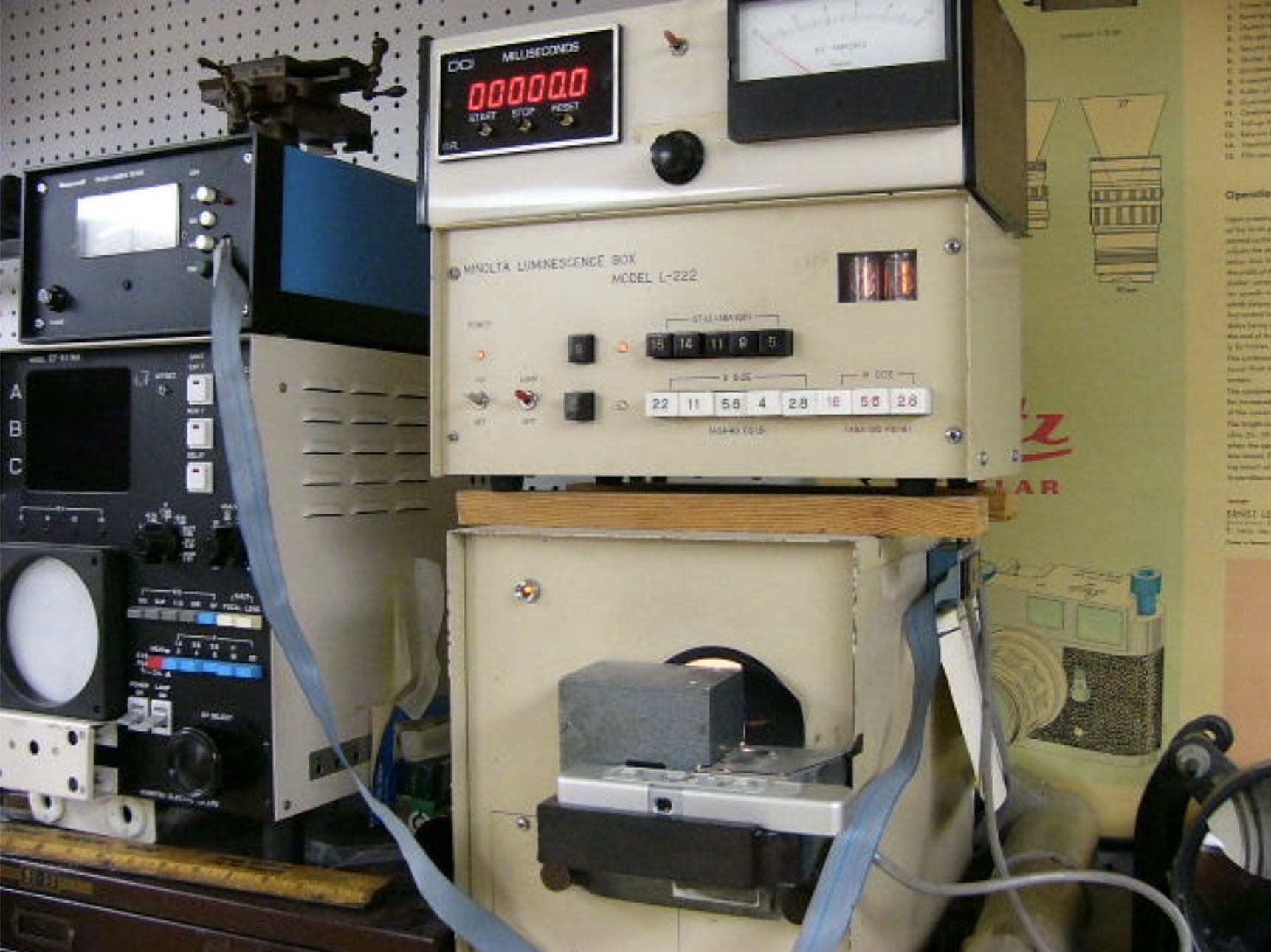 So let’s measure the shutter speeds of our Minox. But how? Most methods send light through the lens and measure the opening of the shutter through the open back cover of the camera. Oh no, not with a Minox!