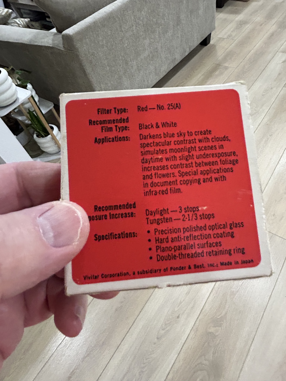 Vivitar 62mm Red No. 25 (A). New in the box with case and data sheet. Made in Japan. Price: $12