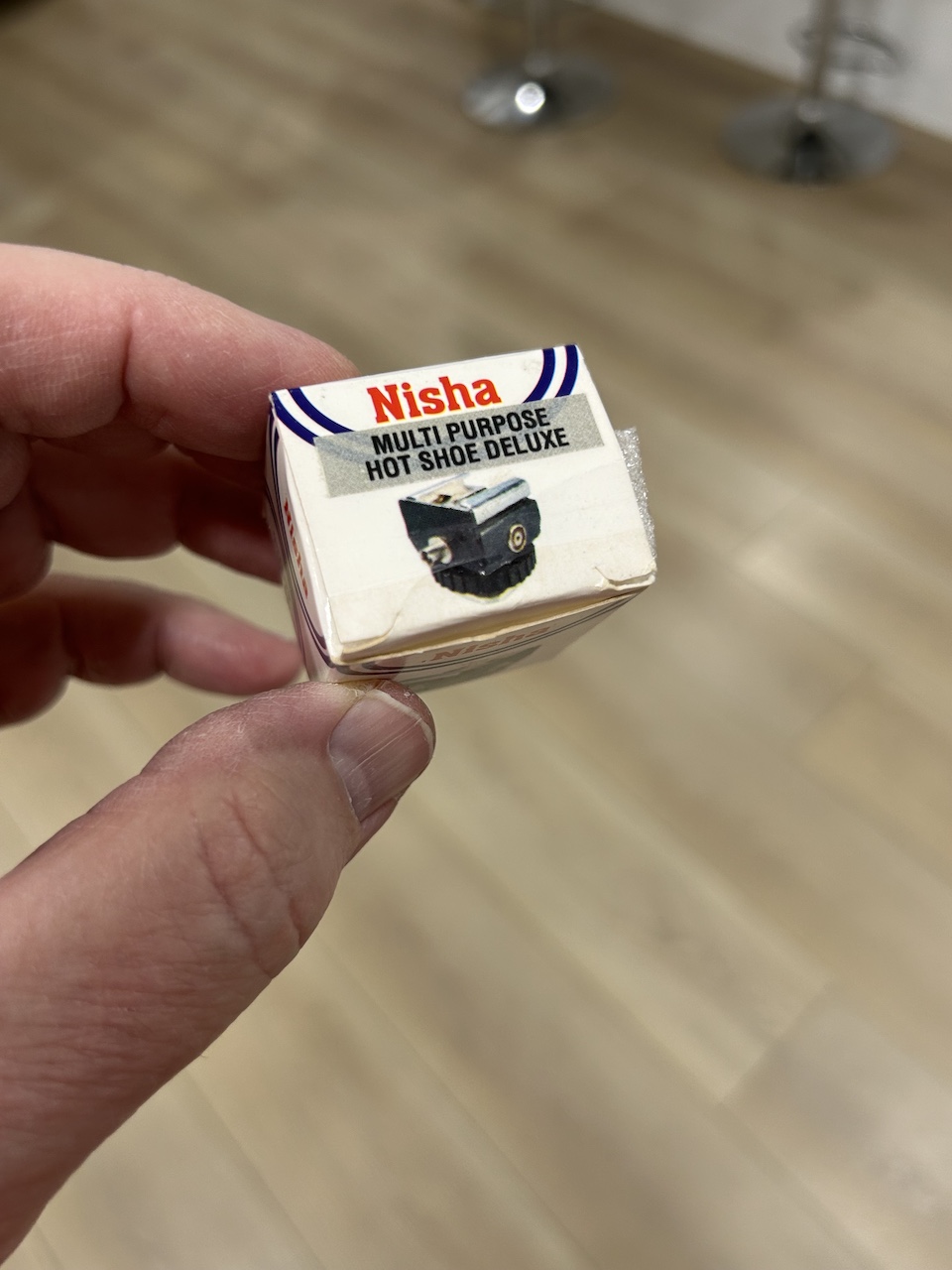 Nisha Accessory Hot Shoe - New. Adds a hot shoe to cameras that do not have them. Mounts on a standard accessory shoe. Perfect for the above bracket. Requires a PC flash cable for use. Price: $10