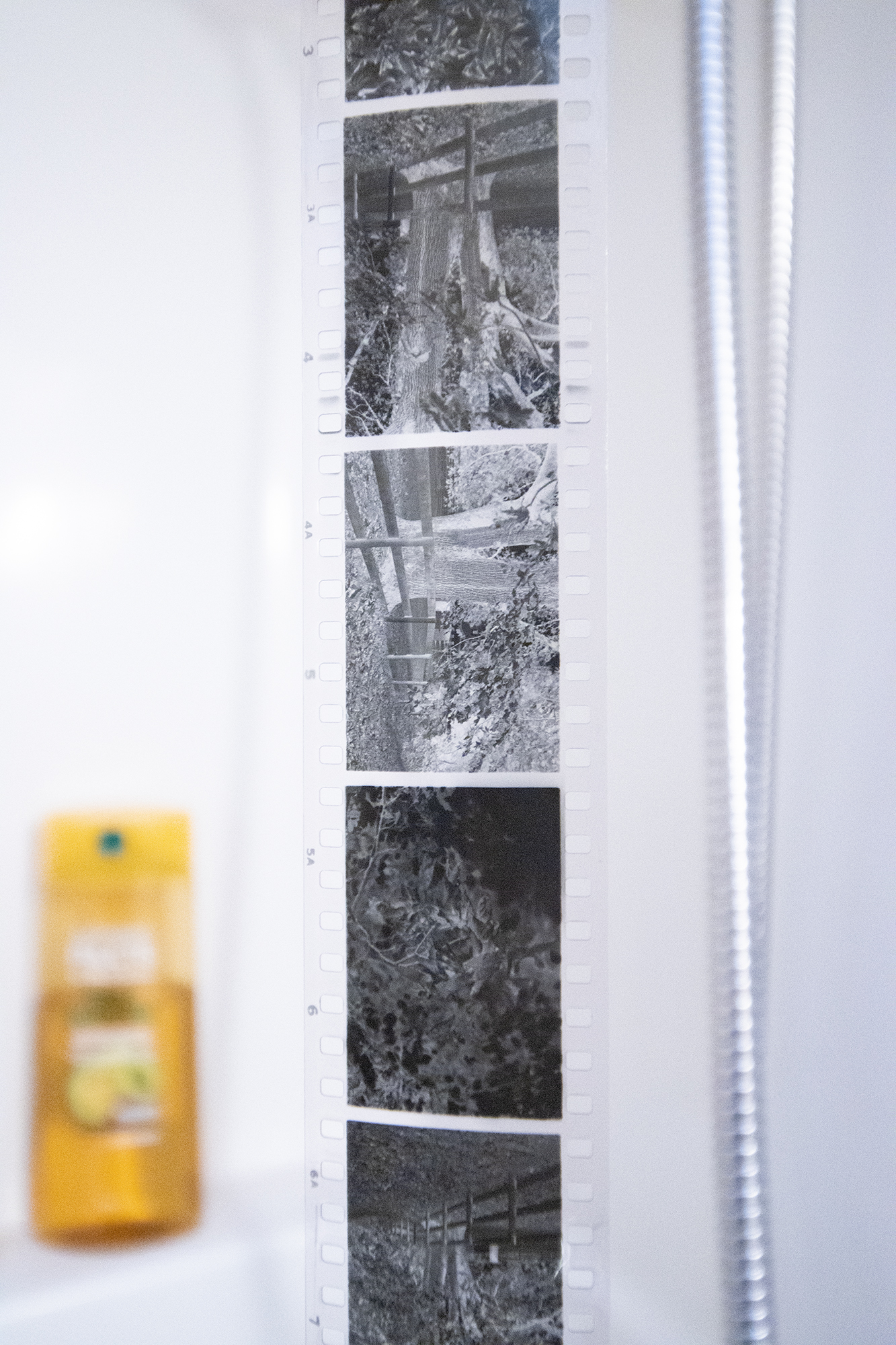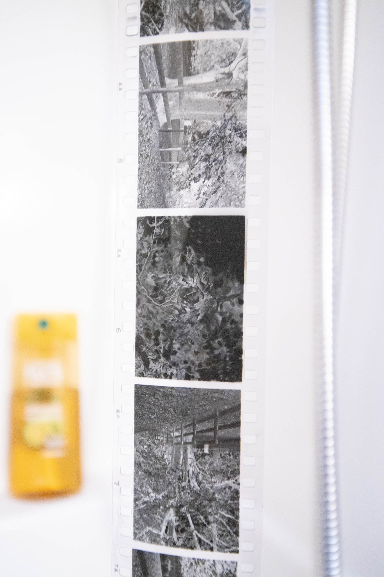 I really hate trying to load 120 on those Paterson reels. It literally took forever to get the film hooked and turned in. Too much curl on the film to get it started. My 120 roll is curling quite a bit in the center of the section hanging. I'll need to flatten it out when I put it in sleeves.