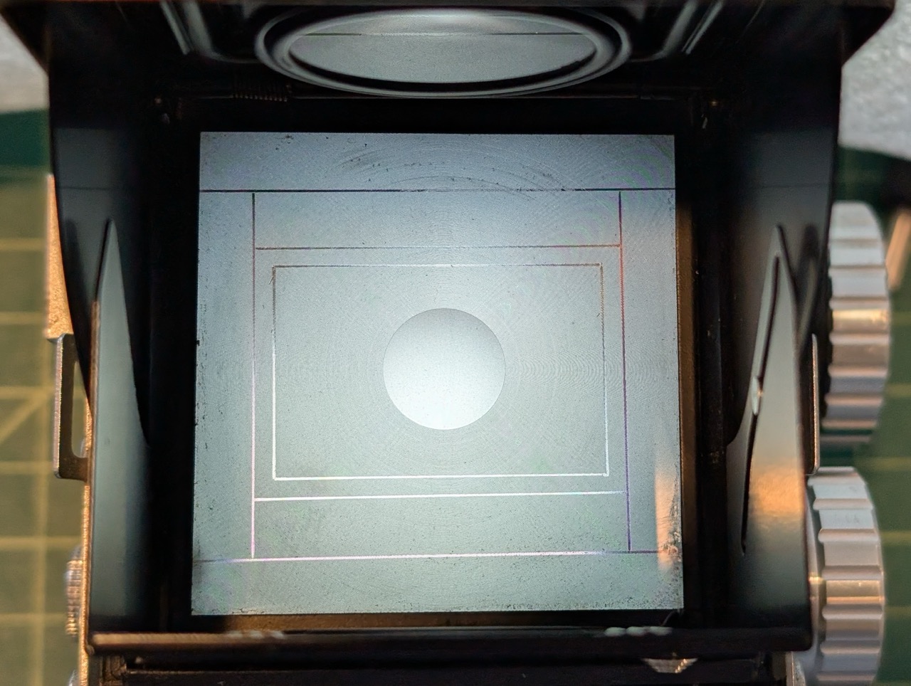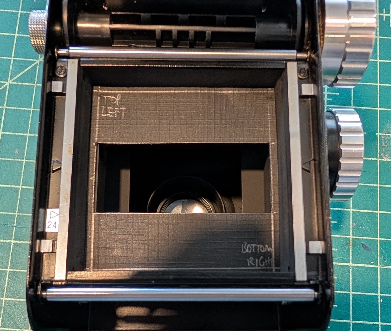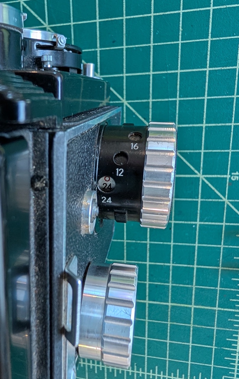 I found another odd TLR (Kallovex) that natively supports 24 frames on 120 film, as well as proper masks on ground glass. So I made a 24x52 pano mask for the film gate, and now I can get 24 frames of pano.