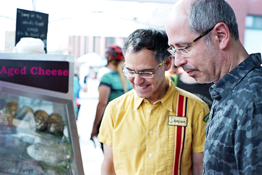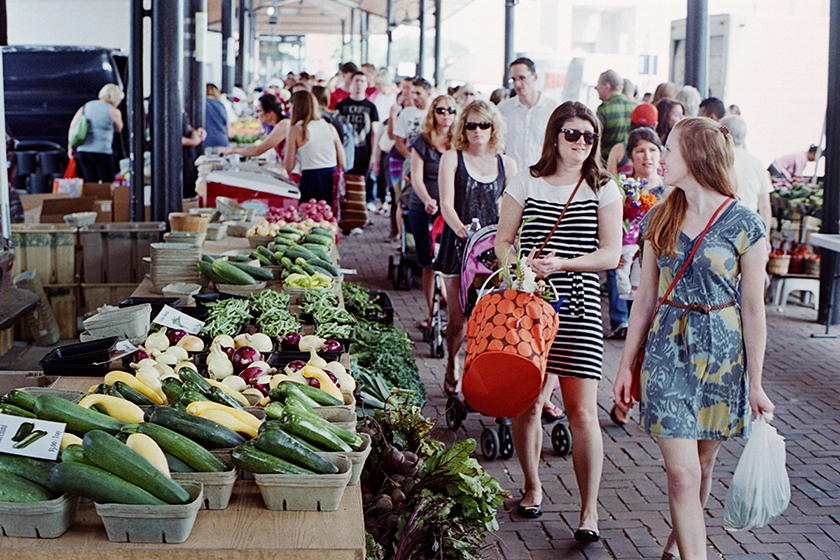 I went to the St Paul Farmer's Market two weeks ago, with a roll of Fuji 800 NPZ loaded in the Canon. I was there with a couple of friends from Korea and my girlfriend, and while they were shopping for locally made Wisconsin cheese (nommy stuff) I waited around for interesting photographs. Perfect way to kill some time. I came home having shot about 5 frames... This one I liked how the people lined up, three strollers in a row, almost as if they lined up for a vanishing point just for me. Then three people, in the same row, wore sunglasses while in the shadows underneath the roof. I was lucky to see it and lucky that I was ready.