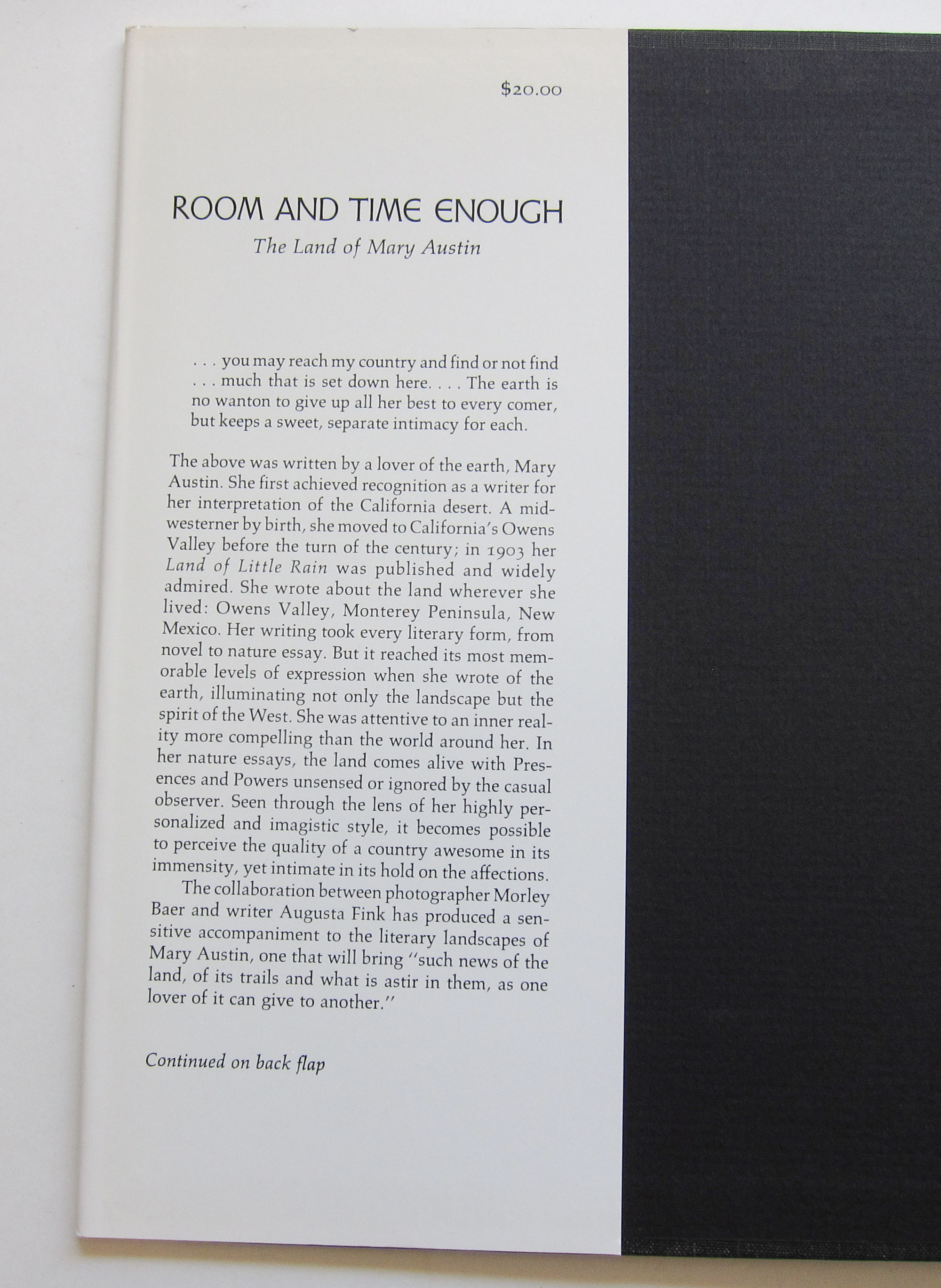 Signed by Morley Baer, Room and Time Enough: The Land of Mary Austin