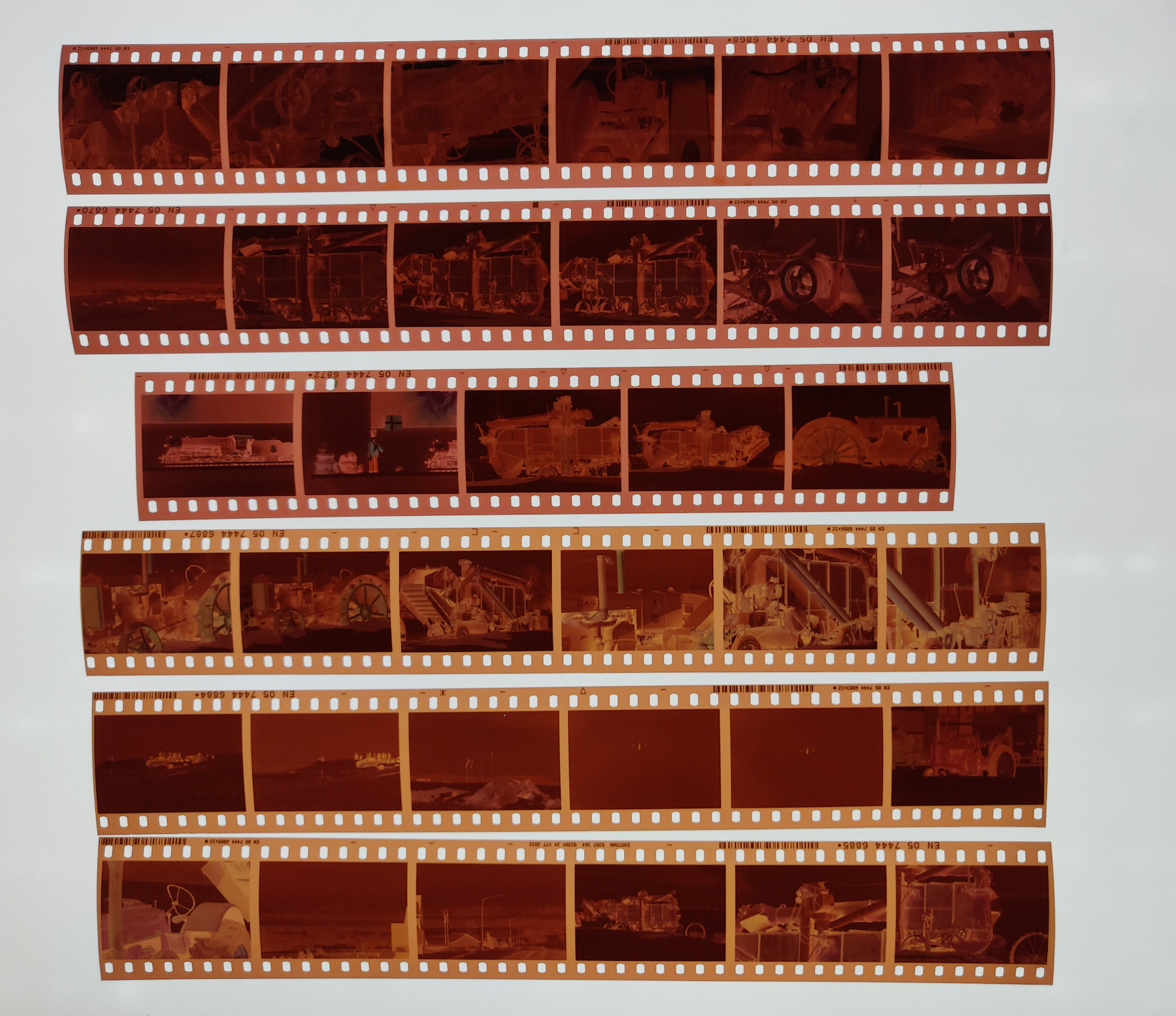 I did another roll where I prewashed before developing. I used Kodaks ECN2 Sodium Carbonate recipe. I also did a quicker DWC post wash ( again trying to be touchless in this process ). I had no left over remjet to wipe off. What I notice, the mask is darker ( similar to the very first roll of 50D I did that looked OK ). I really don't know what this Vision 3 film should look like. Using the pre wash, I think the color is much better. One tractor is my DWC post wash, the other is using the ECN2 prewash. The Prewash version is much truer to the original. One the pic of the negatives, the top three are the DWC post wash, the bottom three are the ECN2 pre wash. In both cases I think I will reduce my development time slightly.
