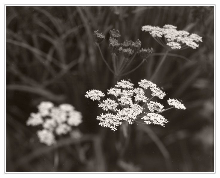 I've shoot this today at home with the lens diaphragm wide open and available light. cambo 120 mm, F8 - 1/2 sec. Ilford FP4 + HC110