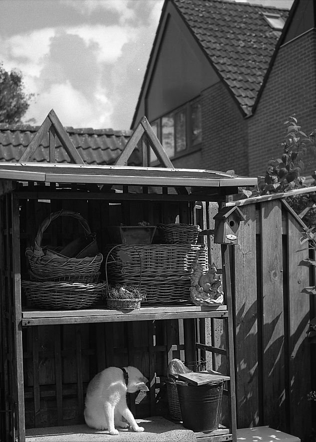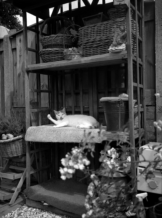 Our cat in his own world in the garden cabinet, taking rest a and a sun bath last sunday.