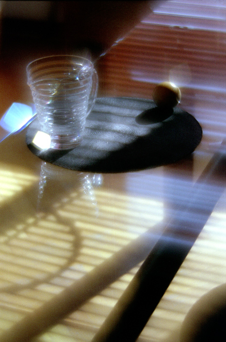 I think this fulfilled the assignment the best of all the entries. I like the use of repetition of pattern from the out-of-view light source (Venetian window shade?) that is picked up and distorted by the glass and its shadow. However, I can't in good conscience give the win to a non-subscriber - it's not fair to those who support the site.