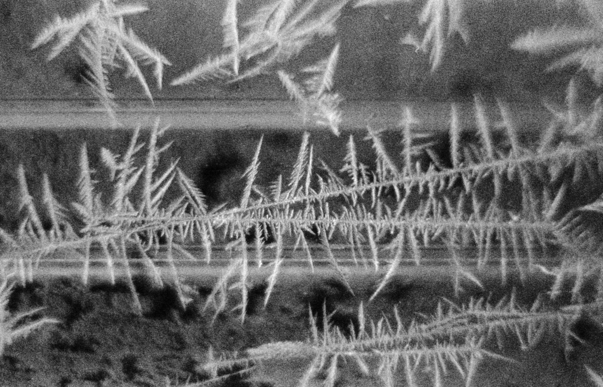 Kodak Tri-X 400 @250, expired 2013, in a Canon Elan 7E with EF 100mm f/2 lens and extension tubes. Developed in 510-pyro 1+100 8.5 minutes at 20C. Handheld macro of the truck on a frosty morning.