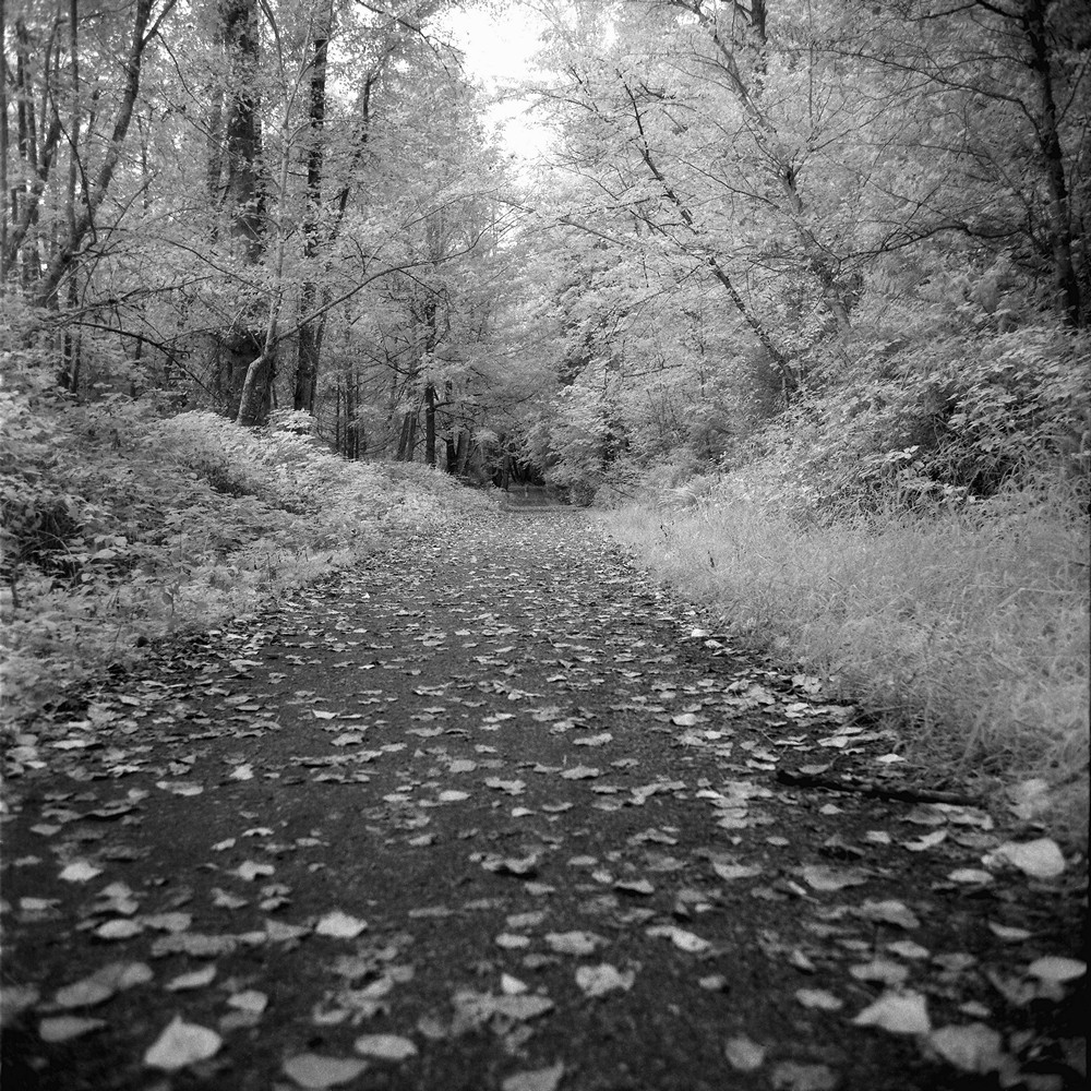 From a recent roll of Ilford SFX, the service road through Watershed Park, the woman and dog in the distance, and the colder weather at the end of the year are each: "On The Way".