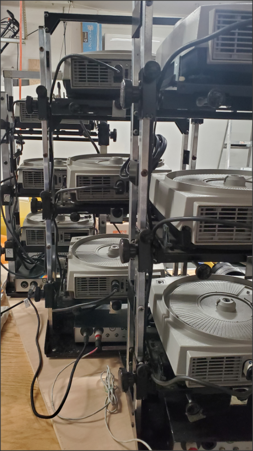 BTW, next up is a 9-on-1 show that is about as close to "art" as I think I will find here. I believe it was created as a "capabilities" piece, by Richard Shipps of DD&B Studios. I had to scrounge up nine E2 projectors, as E3s are too slow! See the pic. I should have it on the channel in a day or two. https://www.youtube.com/@AV_archaeology/videos