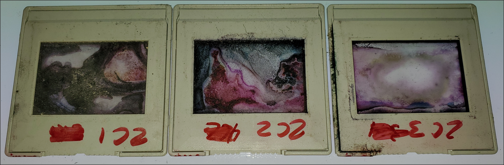 I don't think those archaeologists will find much. I have learned recently that slides don't tolerate less-than-perfect conditions. Here are some that were temporarily exposed to water/dampness while in storage