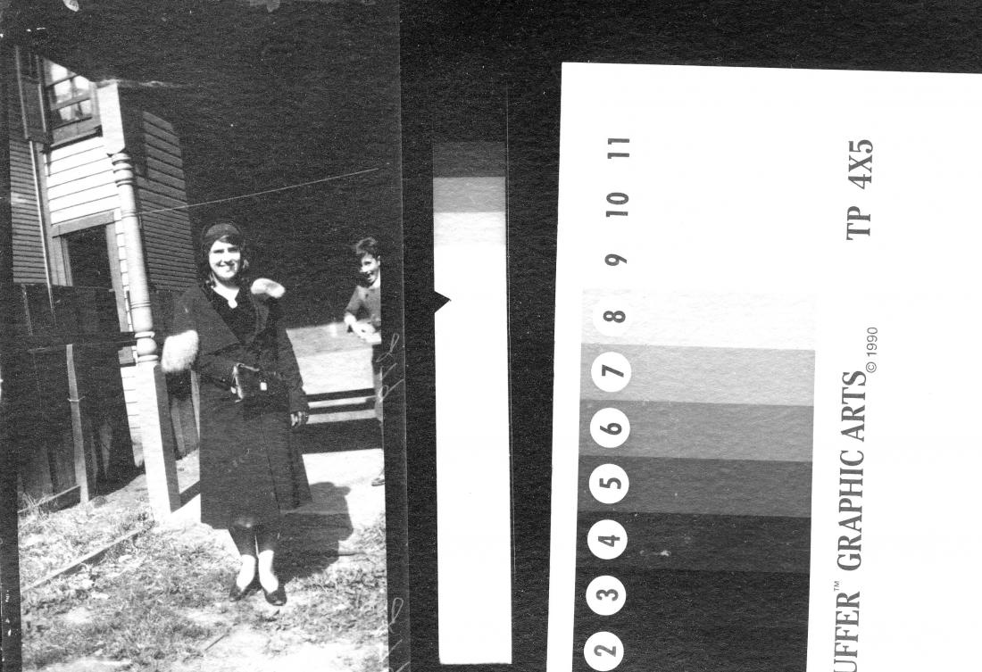 The next two are comparisons of my Azo medium grade and Azo grade 2. The last photo is an uneditied or cropped photo with both the Azo and Azo scanned on one pass (doing separate scans changed the relationships of the images as you can see from the previous two photos) with identical process and exposure conditions. I used an old negative from the 20s to get that "old time" look.