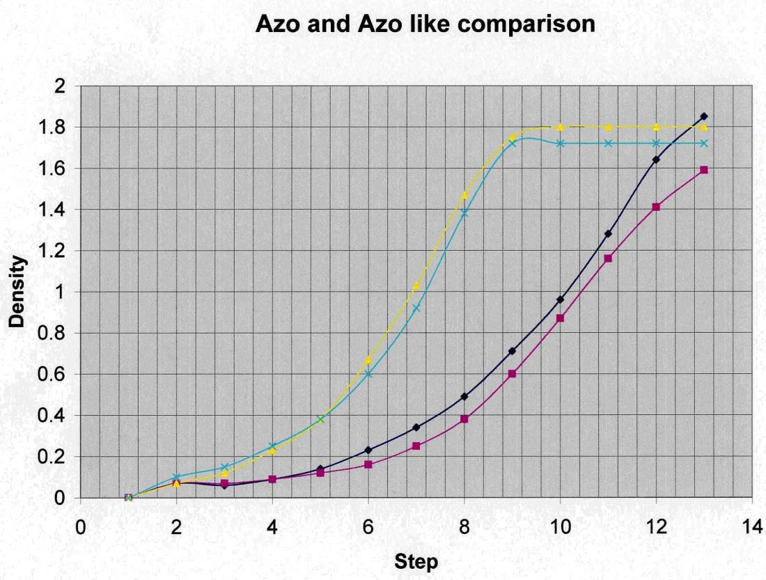 The curves in #4 represent the actual Stouffer curves from the Azo experiments and are from right to left, My Azo type soft (~2), Azo grade 2, my Azo medium (~2-3) and my Azo hard (~3-4).