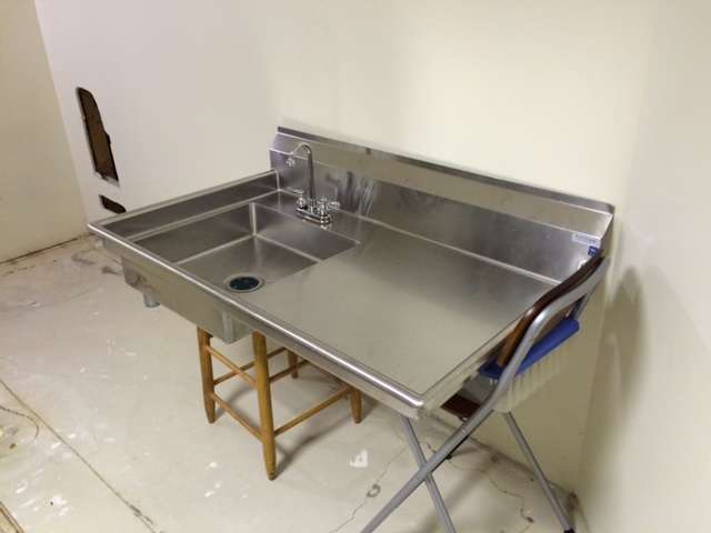 The general idea is to build a general purpose slop sink useful for paint brush cleaning and other odd washing jobs plus have some features useful for darkroom work. The sink is a $100 Craigslist find from a local restaurant.