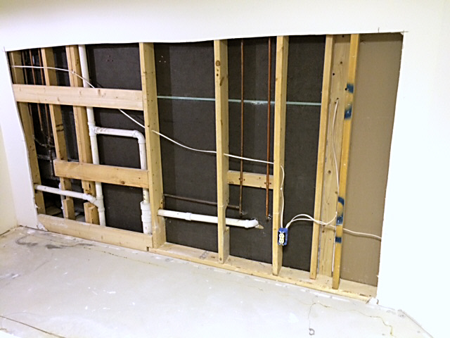 I've started removing the carpet and trim from the wall where the sink will be installed. The back side of the wall is bathroom, so there's lots of access to existing plumbing right there. The next step is to remove much of the drywall to gain access to the house plumbing. After that, I'll need to draw a simple plan and file a plumbing permit with the county. They required such things as vented drains (for good reason) and I'll have to get it inspected before I close the wall back up. I also plan a new electrical circuit to add GFI outlets above the counter top level and additional lighting about the sink. That's another $50 permit. Might as well do it right.