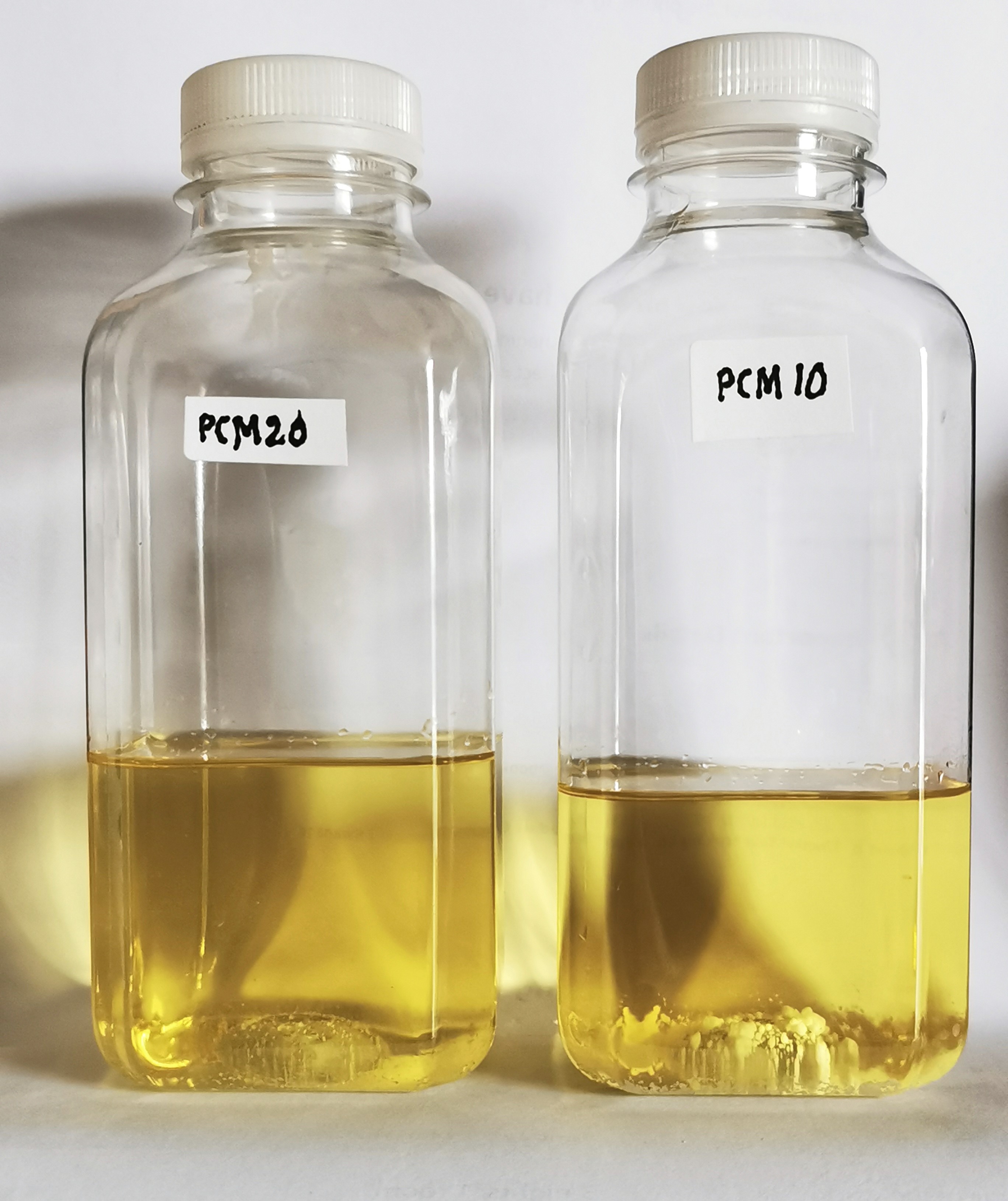 I am actually using a PCM20 sample which was made up 2 months ago , this is very light straw color and free of crystals.