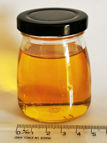 After about 6 months the remaining working sample (not the storage sample) was decanted into a wide necked 100 ml clear glass bottle (pic). A tiny few crystals carried over and settled out but the decanted PCM20 is now easy to see and syringe out.